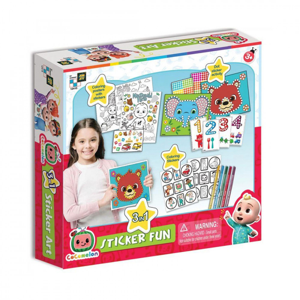 Üdvözölünk a CoComelon 3 az 1-ben matricás szórakozásban. Belül rengeteg nagyszerű tevékenységet, valamint sok újrafelhasználható matricát találsz. Tartalma: 2 színes matricalap, 4 színes poszter, 1 matricalap, 6 pöttyös poszter, 2 pöttyös matricalap, 1 jelölőkészlet.