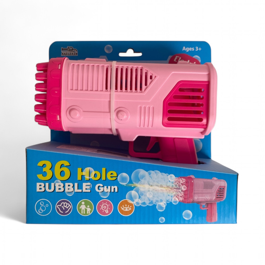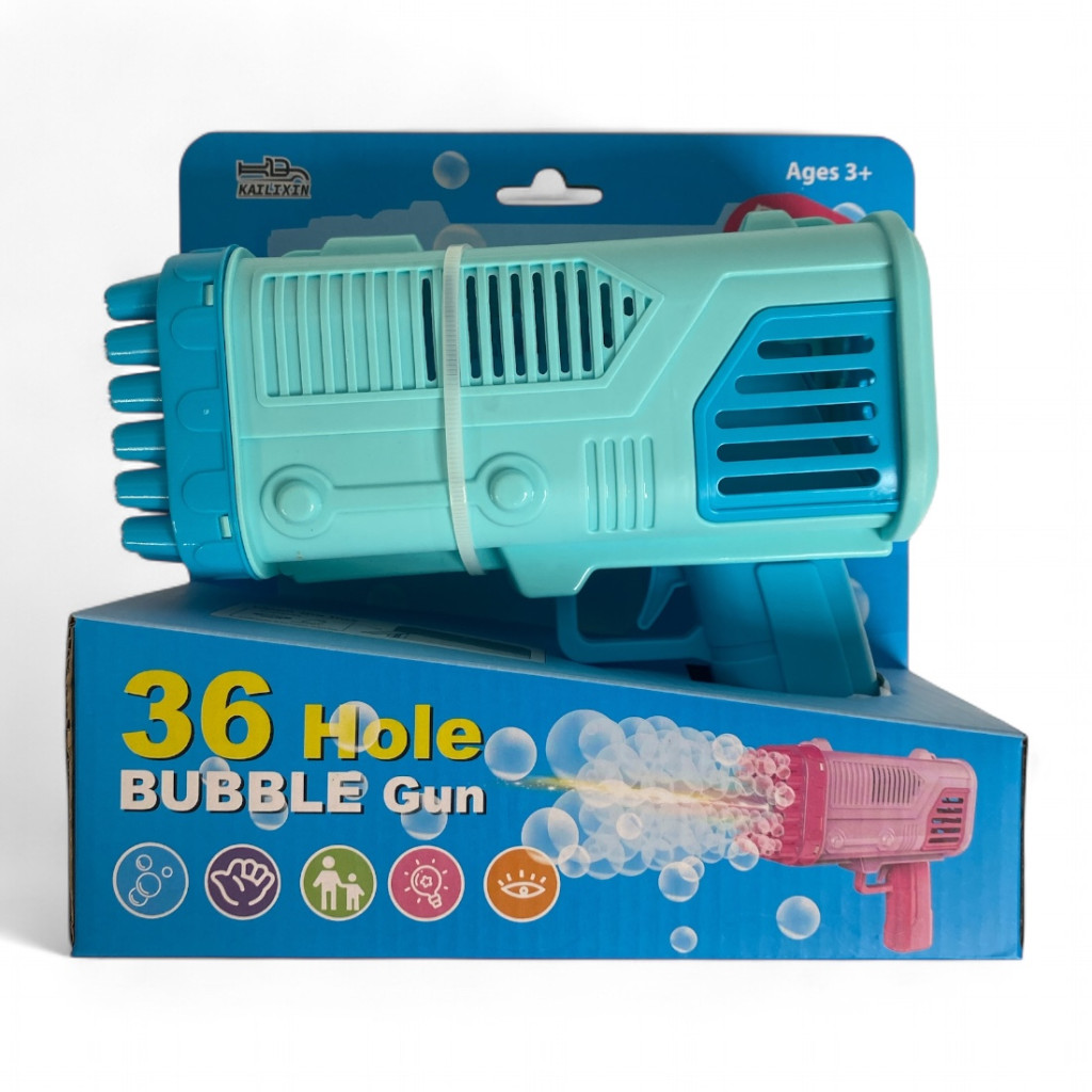 Vidd játékba a buborékfújás élményét ezzel a látványos, 36 fúvókás buborékfújó géppisztollyal! A különleges kialakítású játék egyszerre rengeteg színes buborékot enged a levegőbe, így ideális szabadtéri mókához, kerti partikhoz vagy strandoláshoz is. Csak mártsd bele a folyadékba, húzd meg a ravaszt, és indulhat is a buborékzápor!