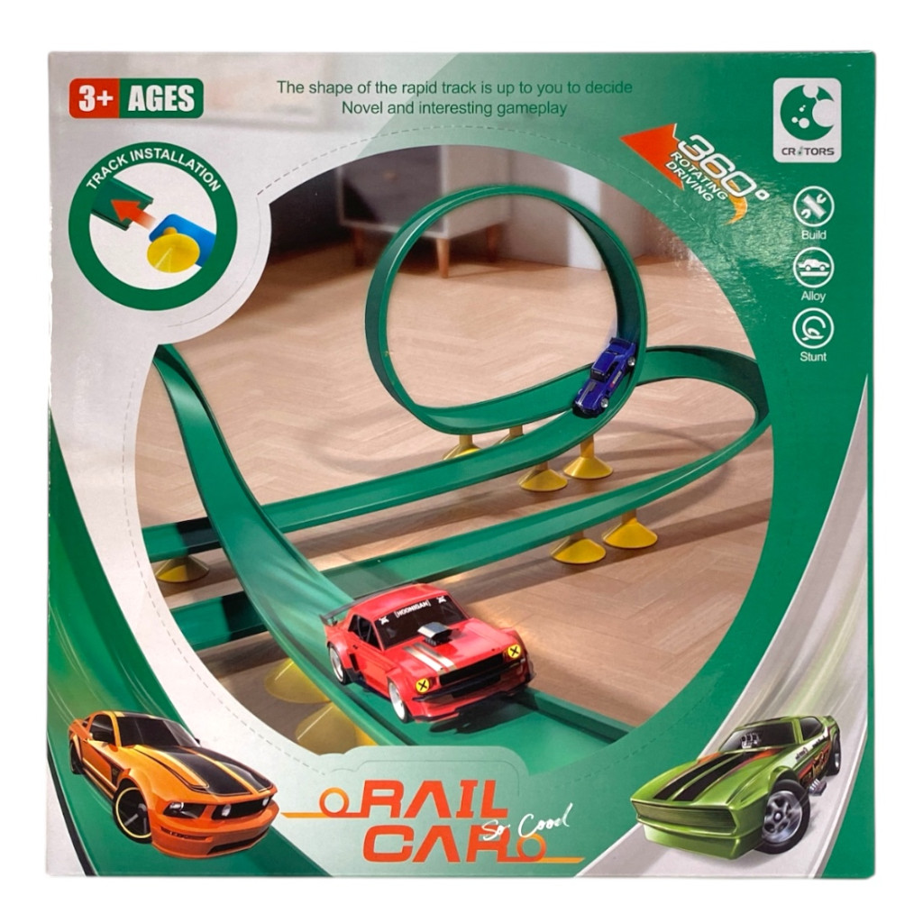 Ez a lenyűgöző autópálya készlet 350 cm hosszú, hurkos sínpályával rendelkezik, és garantáltan szórakozást nyújt az egész családnak. A készlet 2 db tartós fém autót is tartalmaz, amelyek készen állnak a versenyre.