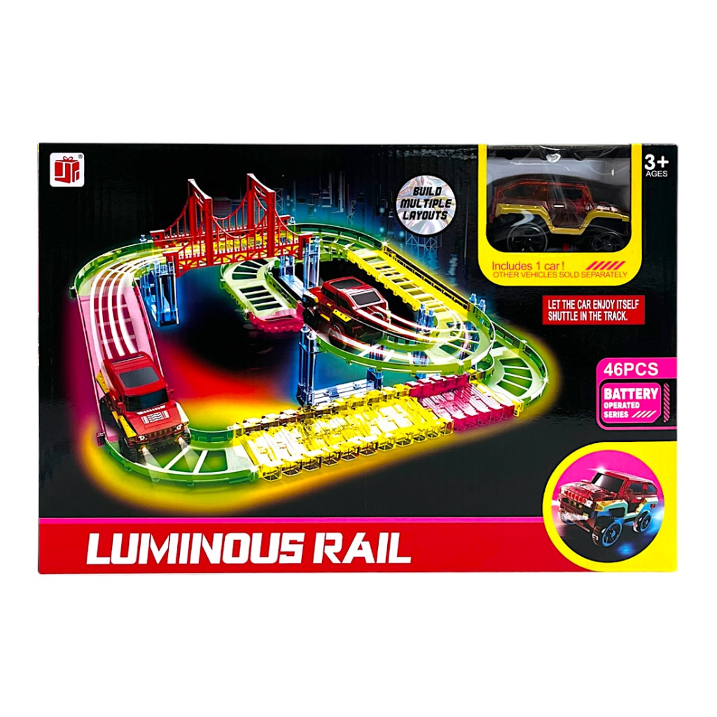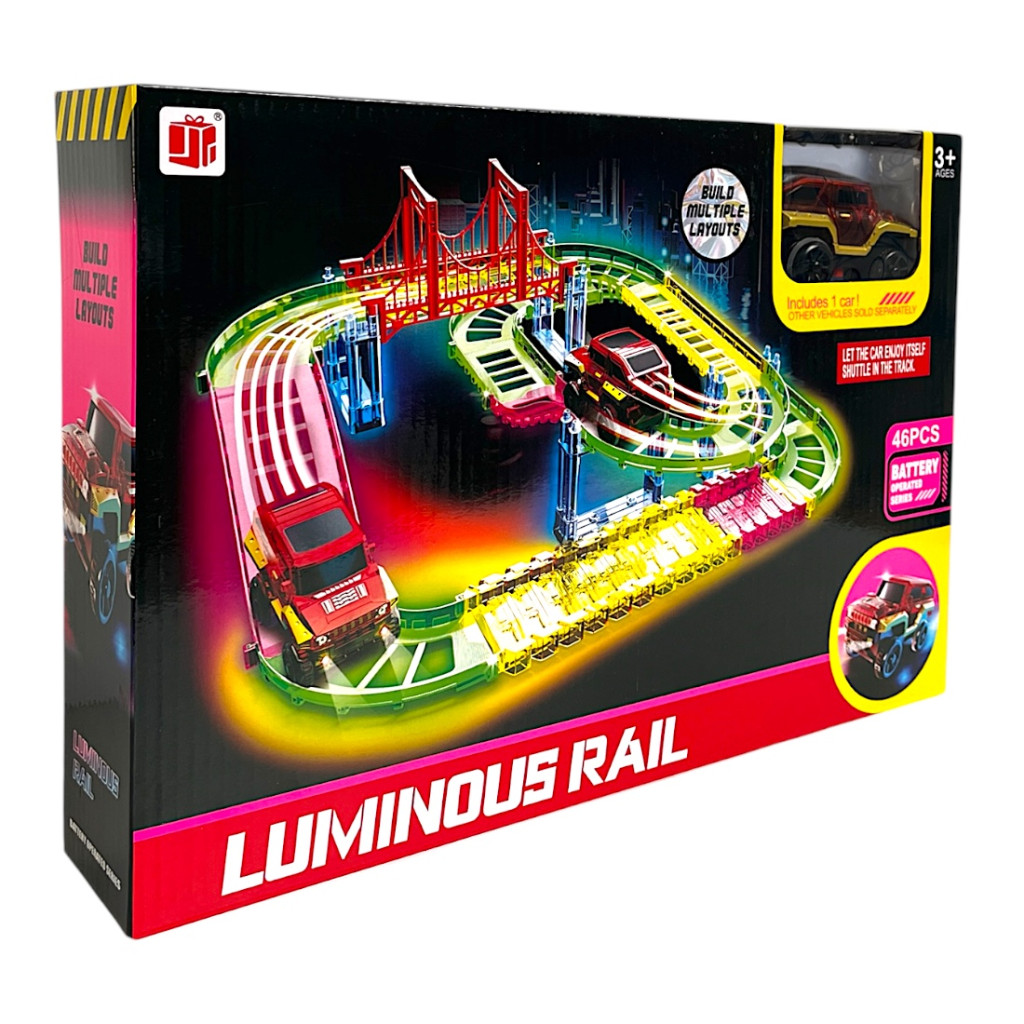 Ez az összeépítős autópálya készlet tökéletes választás a kis mérnököknek és autórajongóknak. A készlet tartalmaz minden szükséges elemet, hogy egy izgalmas, sötétben világító pályát építhess, amellyel órákon át szórakozhatsz. A 34x23 cm-es dobozban található egy autó is, ami kiegészíti a szórakozást.