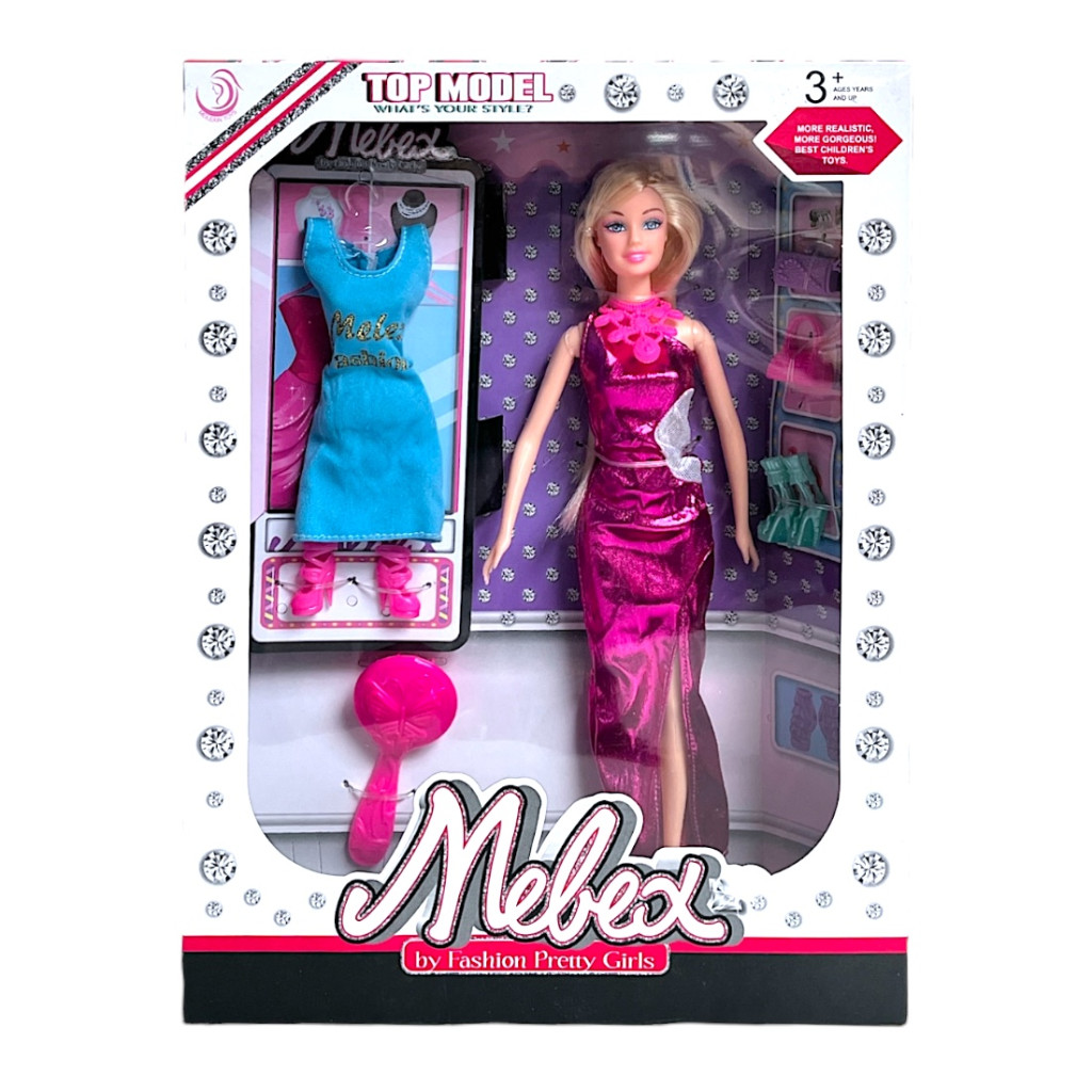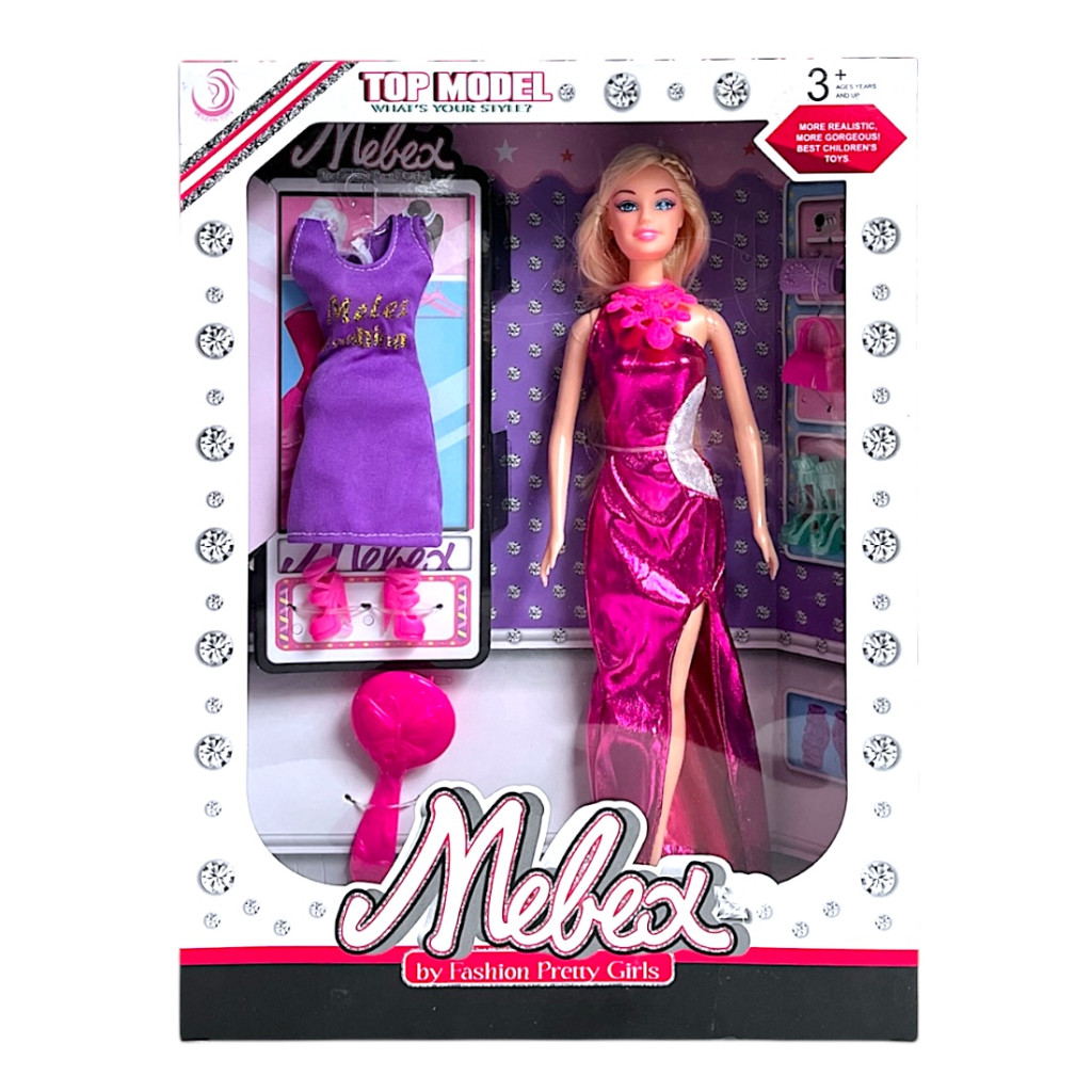 Elegáns, báli ruhás baba készlet, kétféle színben, dobozban.