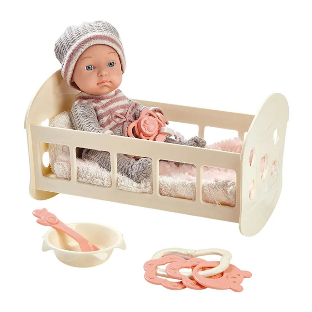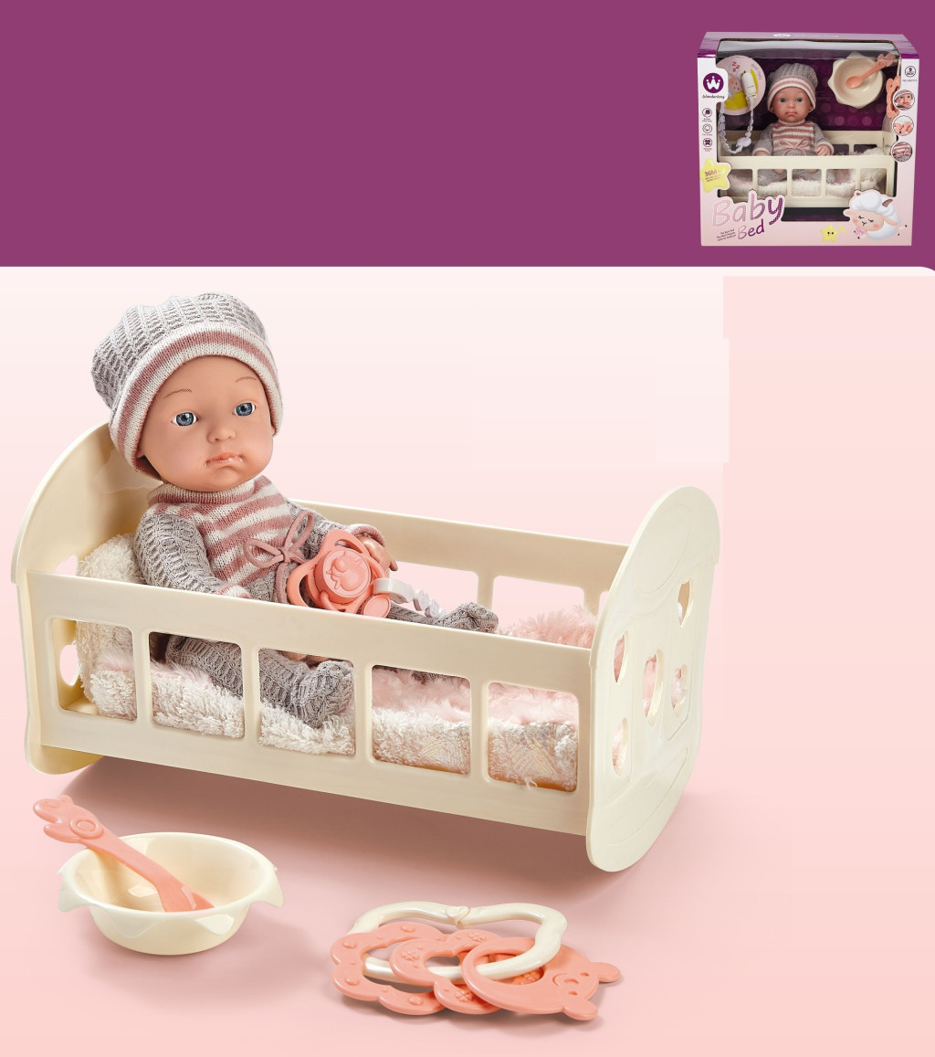 Ez a bájos babaágyas játékkészlet tökéletes választás minden kisgyermek számára, aki szeret gondoskodni. A készletben egy aranyos, sapkás baba található puha takaróval, valamint kiságy, etetőtál és kanál is tartozik hozzá. A kiegészítők segítségével a gyerekek eljátszhatják az etetést, altatást és gondozást, fejlesztve ezzel empátiájukat és fantáziájukat. A kellemes, pasztellszínű kiegészítők és a részletgazdag kidolgozás igazi kedvenccé teszik ezt a játékot minden kis “anyuka” számára.