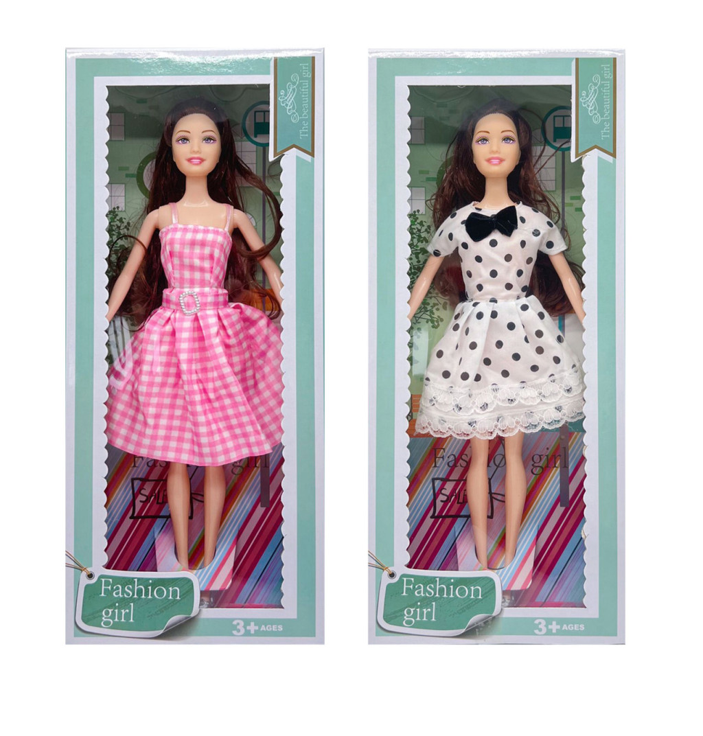 A Fashion Girl divatbaba igazi trendi választás minden kislánynak, aki szeret öltöztetni és divatozni! A babák kétféle stílusban kaphatók: a rózsaszín kockás ruha vidám, nyári hangulatot idéz, míg a fekete-fehér pöttyös ruha csipkés szegéllyel elegáns, klasszikus megjelenést biztosít. A baba hosszú, barna haja könnyen fésülhető, így a gyerekek új frizurákat is készíthetnek neki. Kiváló minőségű, részletgazdag kivitelezésével remek kiegészítője minden babagyűjteménynek és szerepjátéknak.