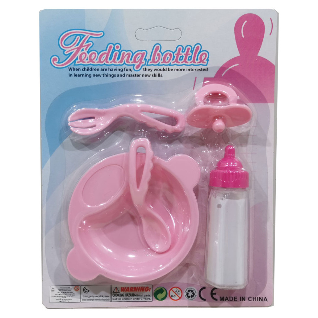 Babaápoló készlet varázscumisüveggel és tányérral, ideális babajátékokhoz.