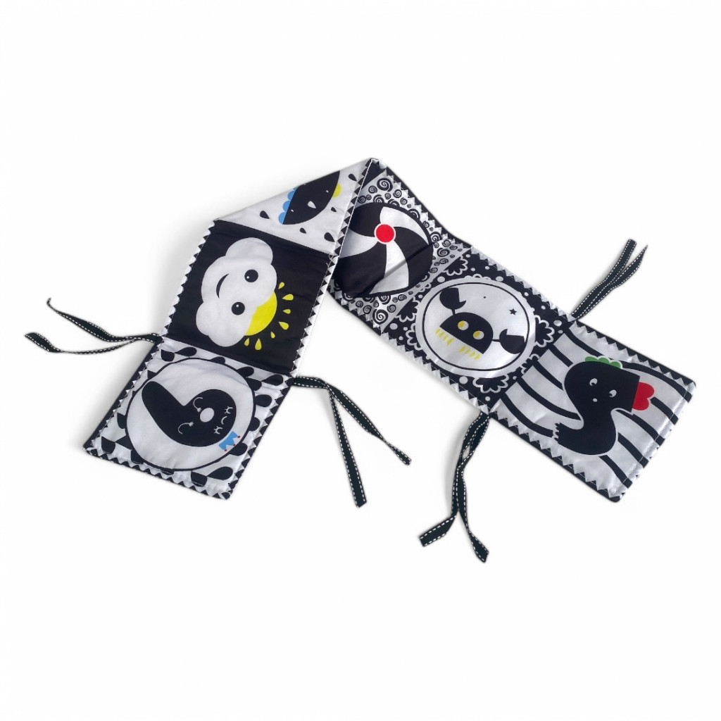 A Bébi fekete-fehér, kiságyra tehető foglalkoztató játék tökéletes választás a csecsemők szórakoztatására és fejlesztésére. Ez a különleges játék segít a kicsiknek megismerni a színeket, formákat és textúrákat, miközben a finom motoros készségeiket is fejleszti.