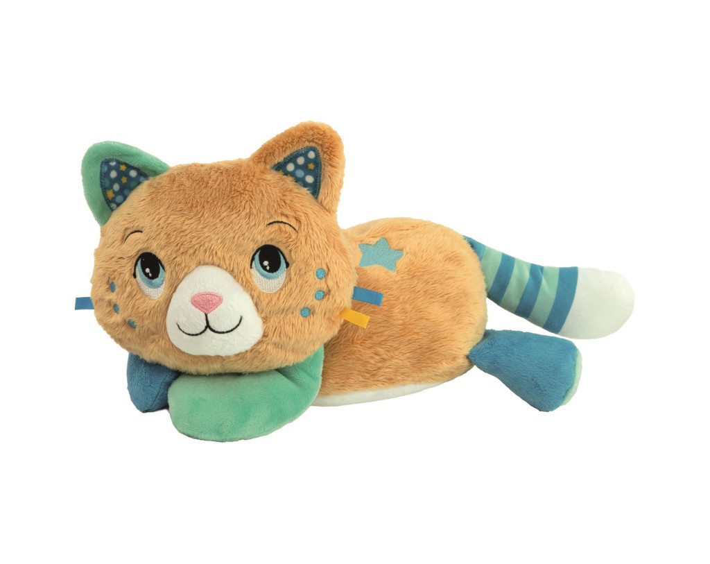 Ez a bájos, 33x24 cm-es plüss cica a legjobb társ a kicsik nyugodt elalvásához. Az interaktív játék dorombol és kellemes dallamokat játszik, amely megnyugtatja a babát és segíti az elalvást. A puha anyagból készült plüss tökéletesen simul a gyermek testéhez, biztonságos és kényelmes ölelgetést biztosítva.