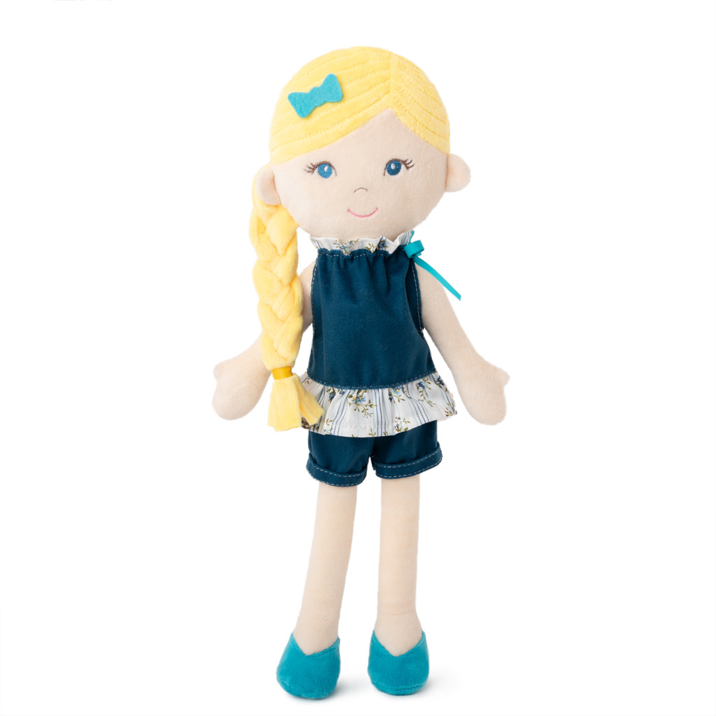 Fedezd fel Bella, a 38 cm magas, gyönyörű rongybaba báját! Bella csillogó, kék hercegnőruhában érkezik, hosszú szőke hajával és koronájával igazi mesebeli karaktert kelt életre. A készletben egy további csere öltözék is található, így a gyerekek kedvük szerint változtathatják Bella megjelenését.