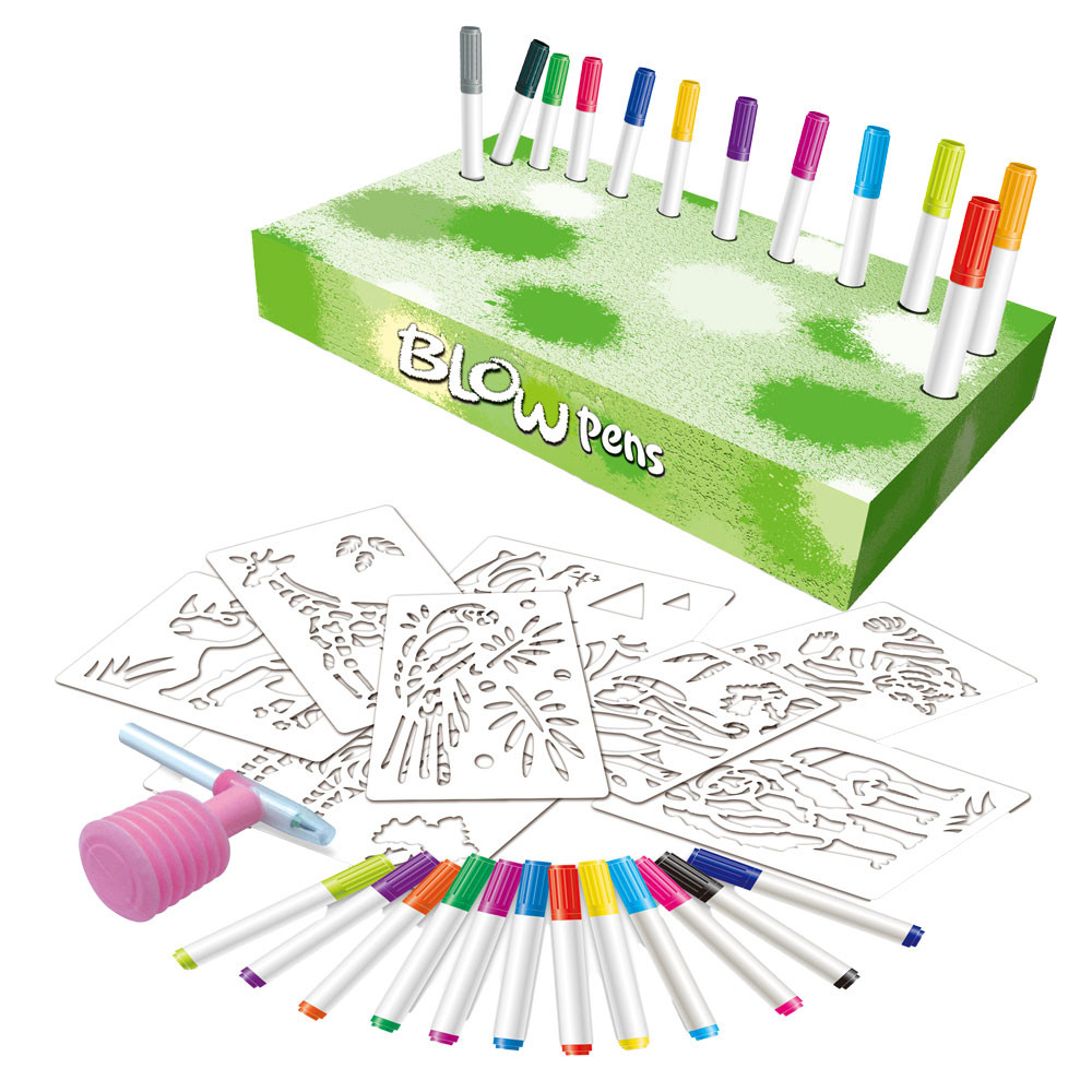 Merülj el a kreativitás világában ezzel a kifestő készlettel, mely spray funkcióval, 8 sablonnal és 12 tollal rendelkezik.