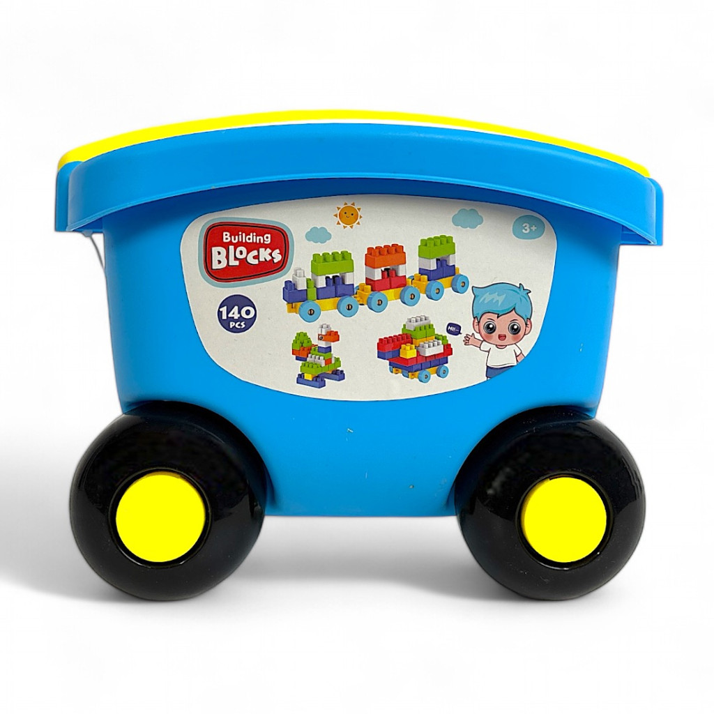 Building Blocks – 140 darabos építőkocka szett gurulós tárolóbanÉpíts, pakolj, húzd – móka bárhol, bármikor!
