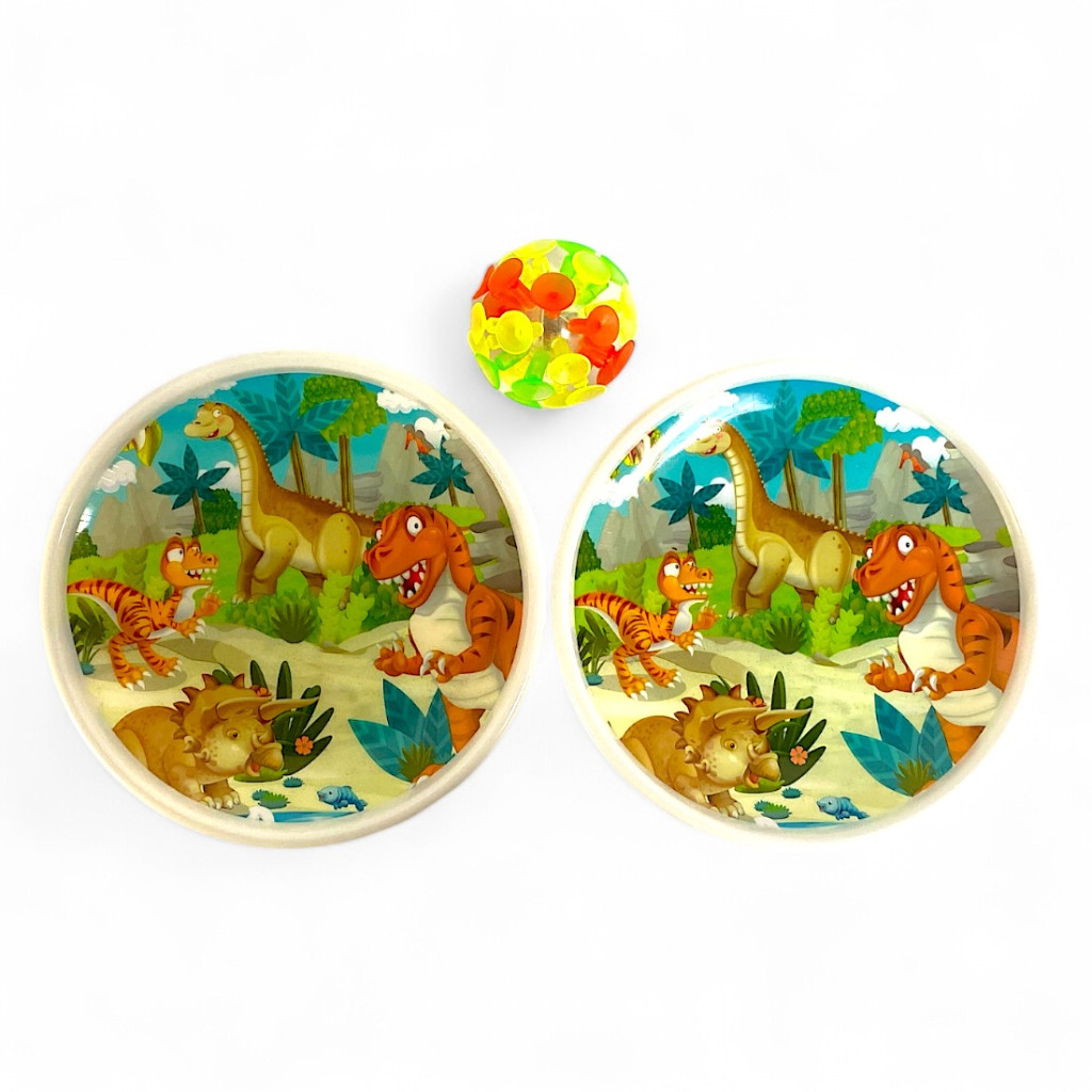- Szuper dínós dizájn – Imádnivaló, színes dinoszauruszok díszítik a korongokat.- Egyszerű és szórakoztató – A tapadókorongos labdát könnyű elkapni, így a legkisebbek is élvezhetik a játékot.- Bárhol játszható – Kiváló választás a kertben, a parkban vagy akár a strandon.- Fejleszti az ügyességet – Segít a mozgáskoordináció és a figyelem fejlesztésében.