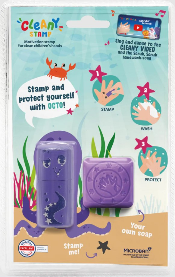 Merülj el a kézmosás élményében a CLEANY STAMP Polipos bélyegzővel! Ez az aranyos, tengeri kalandokat idéző bélyegző tökéletes választás minden kis felfedező számára, hogy játékosan megtanulja a higiénia fontosságát.