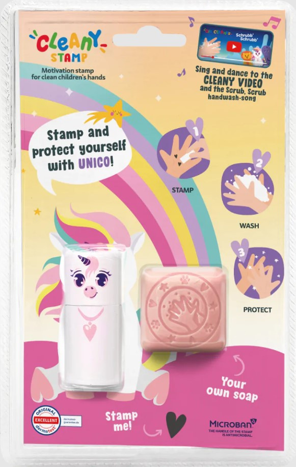 Varázsolj egy kis csillogást a kézmosásba a CLEANY STAMP Unikornisos bélyegzővel! Ez a színes, unikornis dizájnú pecsét ösztönzi a gyerekeket, hogy rendszeresen és alaposan mossanak kezet.