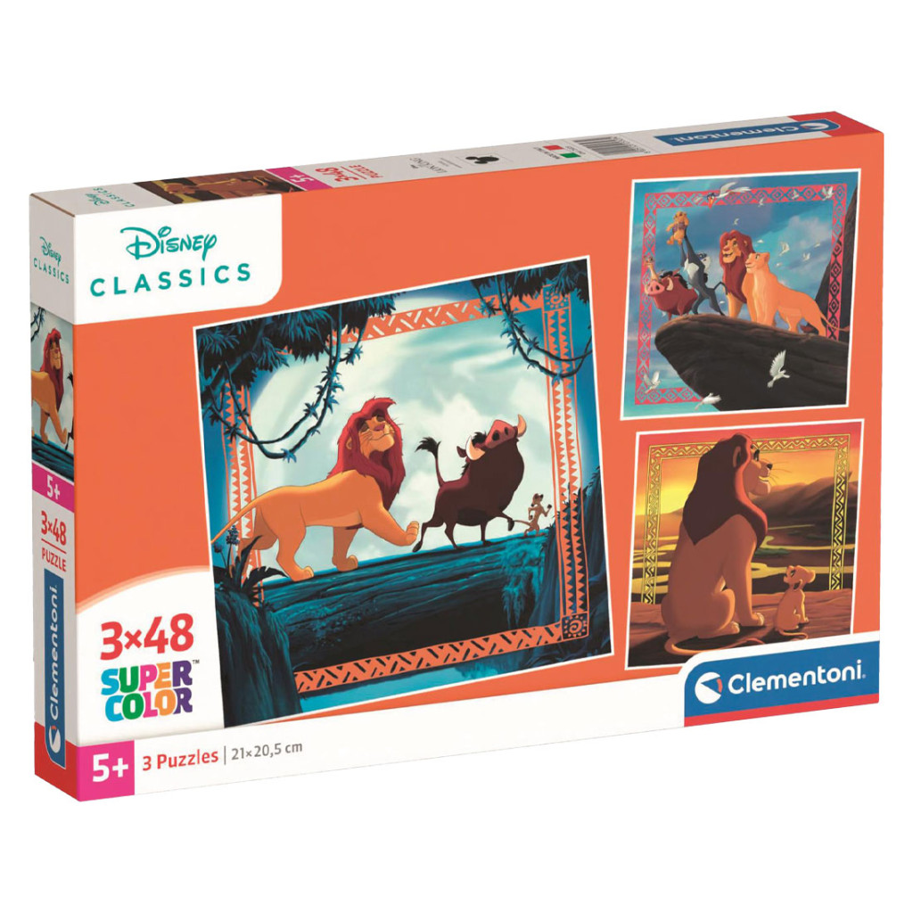 A Clementoni Disney Classic Oroszlánkirály puzzle 3 x 48 db-os (C25323) elhozza a Disney egyik legnépszerűbb és legikonikusabb meséjét, az Oroszlánkirályt. Ez a különleges kirakós készlet három különálló, 48 darabos puzzle-t tartalmaz, amelyek a film legemlékezetesebb jeleneteit és szeretett karaktereit ábrázolják, köztük Simbát, Nalat, Timont és Pumbát. A színes és részletgazdag illusztrációk elvarázsolják a gyerekeket, miközben újra átélhetik az Oroszlánkirály történetét.