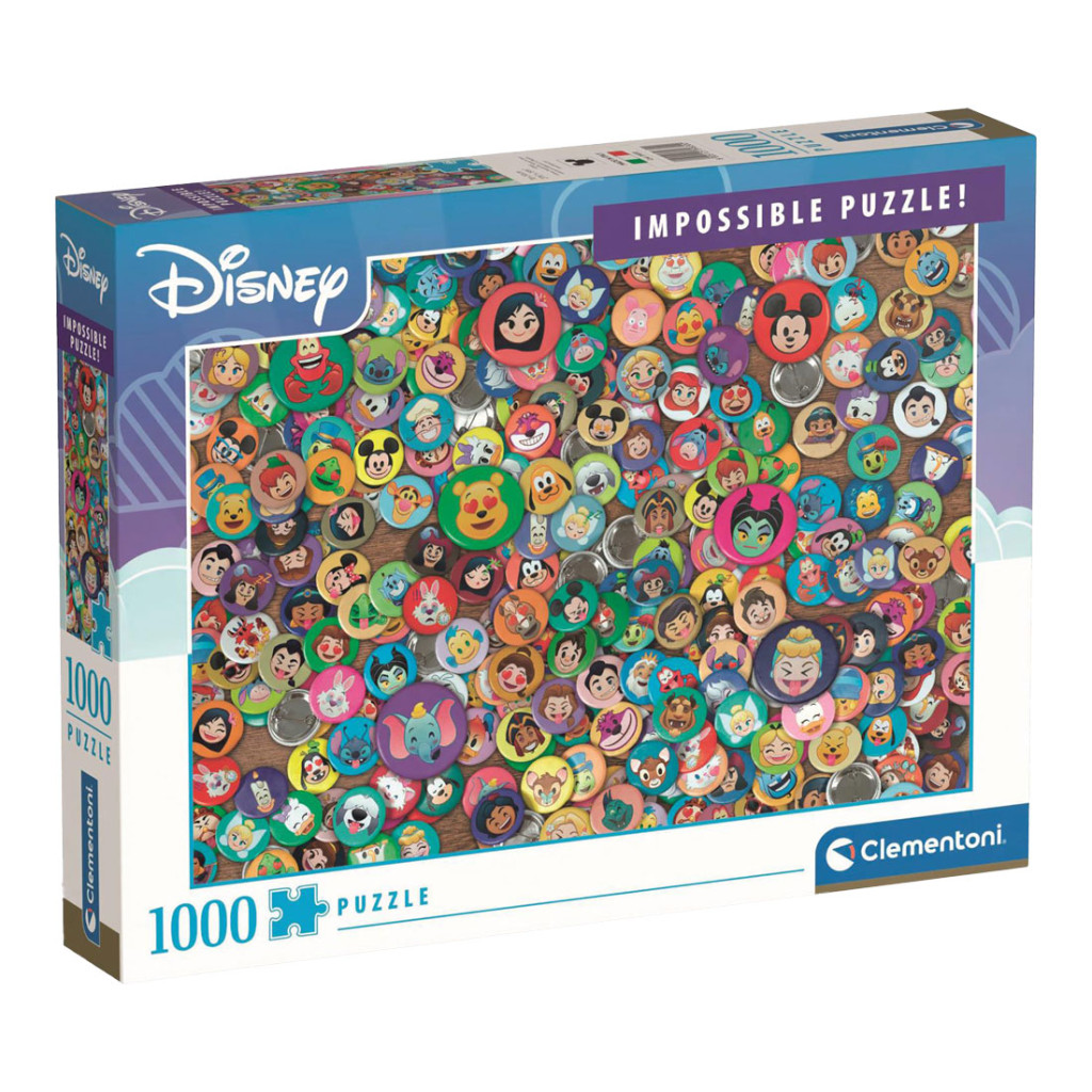 A Clementoni Disney Impossible puzzle (C39830) egy igazán kihívásokkal teli, 1000 darabos kirakós, amely tökéletesen kielégíti a Disney-rajongók és a puzzle-mesterek igényeit. A "Impossible" sorozat neve is utal arra, hogy ez a kirakós nem egy átlagos feladvány: a képen számos ikonikus Disney-karakter található, mindezt egy színes, részletgazdag háttér előtt, amely folyamatosan próbára teszi a figyelmedet és türelmedet.