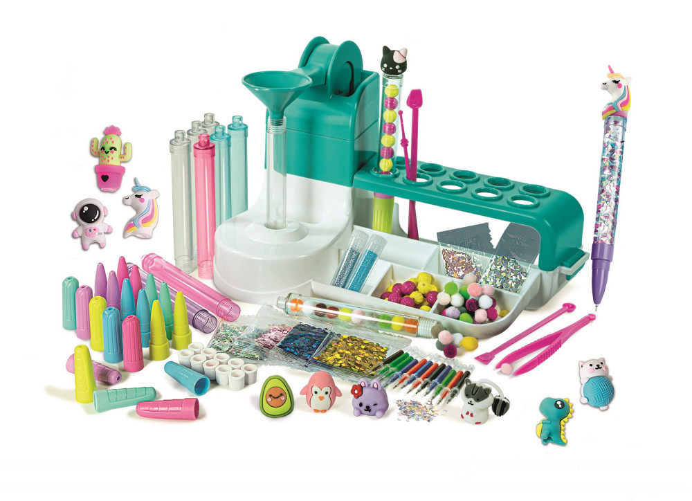 Eredeti kreatív laboratórium ahol gyermeke sok színes tollat készíthet! Egy új ötletjáték, amely lehetővé teszi a gyerekeknek, hogy elkészítsék és személyre szabják tollaikat, rengeteg kiegészítővel és díszítéssel. Egy praktikus tevékenységasztal és a játéktevékenységet támogató gazdag hangszerkészlet a lenyűgöző eredményért! A gyerekek sokkal többet tehetnek, mint pusztán egy toll személyre szabása: valódi kreatív erőfeszítésbe fognak bele!