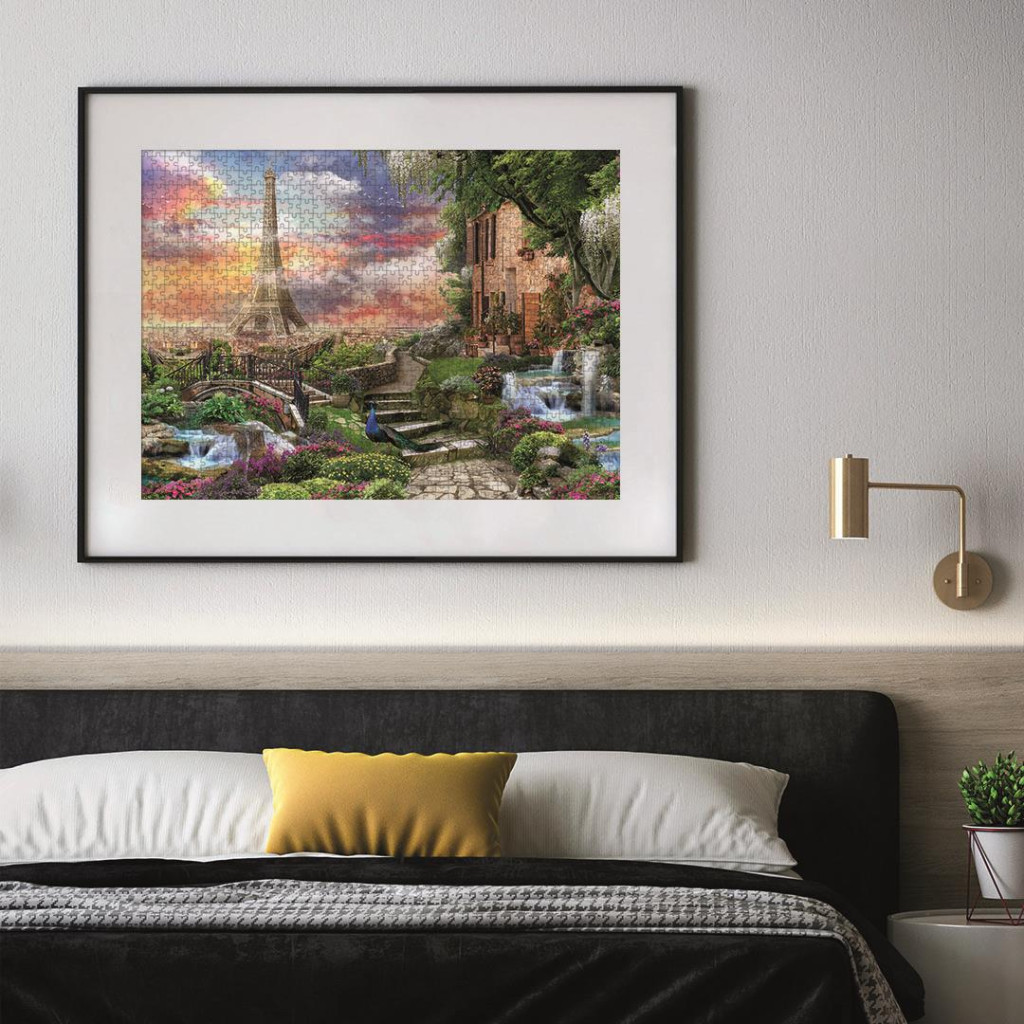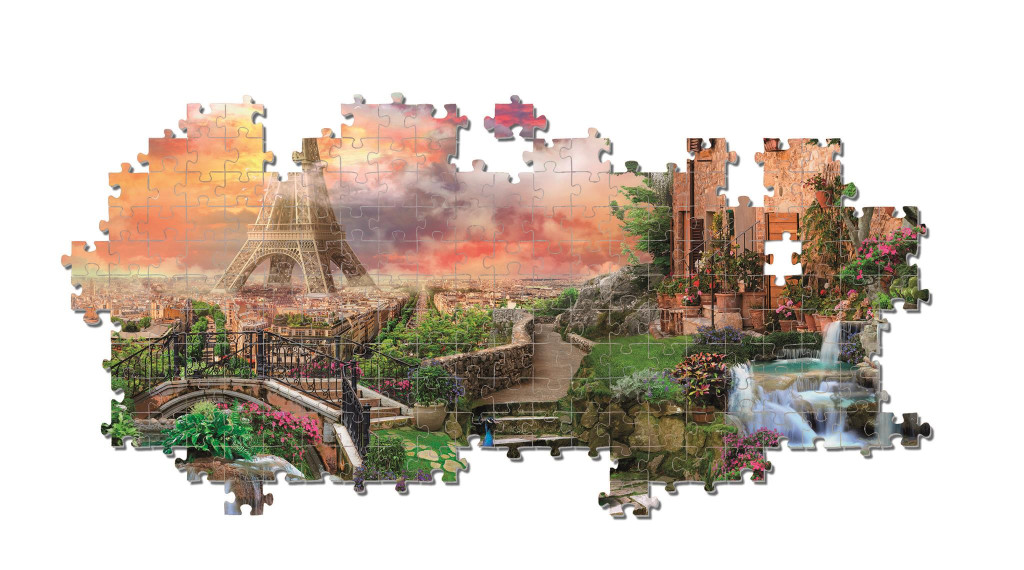 Lélegezz fel a városi nyüzsgésből és merülj el a békés romantika világában! Ez a gyönyörű Clementoni 3000 darabos puzzle egy álomszerű jelenetet ábrázol: virágzó kert, csobogó patak, kanyargó ösvények – és a háttérben méltóságteljesen emelkedik az Eiffel-torony a színes naplementében.
