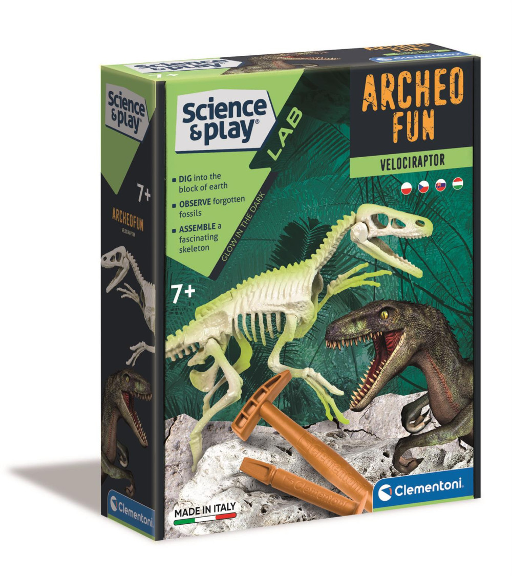A Velociraptor, a legendás őskori lény újra életre kel ebben a valódi őslénykutatóknak szánt játékban! A kalapács és a véső ideális eszközök ennek a hihetetlen dinoszaurusznak a tégla faragásához és csontvázának feltárásához! A csontváz világít a sötétben.A játék 7 éves kortól ajánlott.A termék csomagolási mérete: 21x25 cm dobozban.