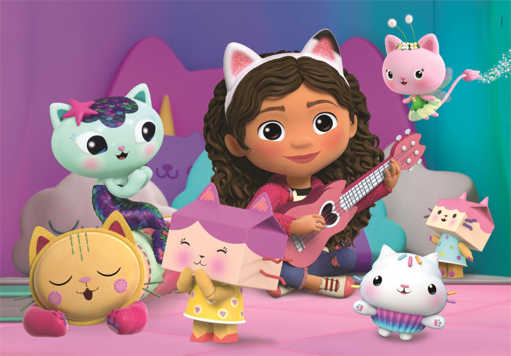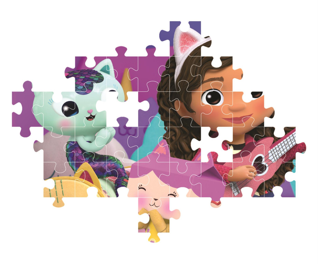 Vidám dallamok és macskás kalandok – Gabby és barátai csak rád várnak!Merülj el Gabby varázslatos babaházának világában, ahol minden puzzle darab egy újabb izgalmas pillanatot rejt! A DreamWorks népszerű Netflix sorozata alapján készült Clementoni SuperColor puzzle egy színes, mókás és szerethető jelenetet tár eléd Gabbyval és imádnivaló cicabarátaival.