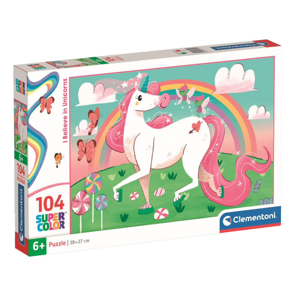 Lépj be az unikornisok varázslatos világába! A Clementoni Super Color 104 db-os Unikornis puzzle elhozza a fantázia és a varázslat világát, amely minden unikornis rajongó szívét megdobogtatja. Az élénk, álomszerű színekkel és részletekkel díszített kép tele van mesebeli elemekkel, amelyek minden egyes darab összeillesztésével még valóságosabbá válnak. A puzzle ideális választás a gyerekek számára, akik szeretik a varázslatos lényeket és a színes, fantáziadús világokat.