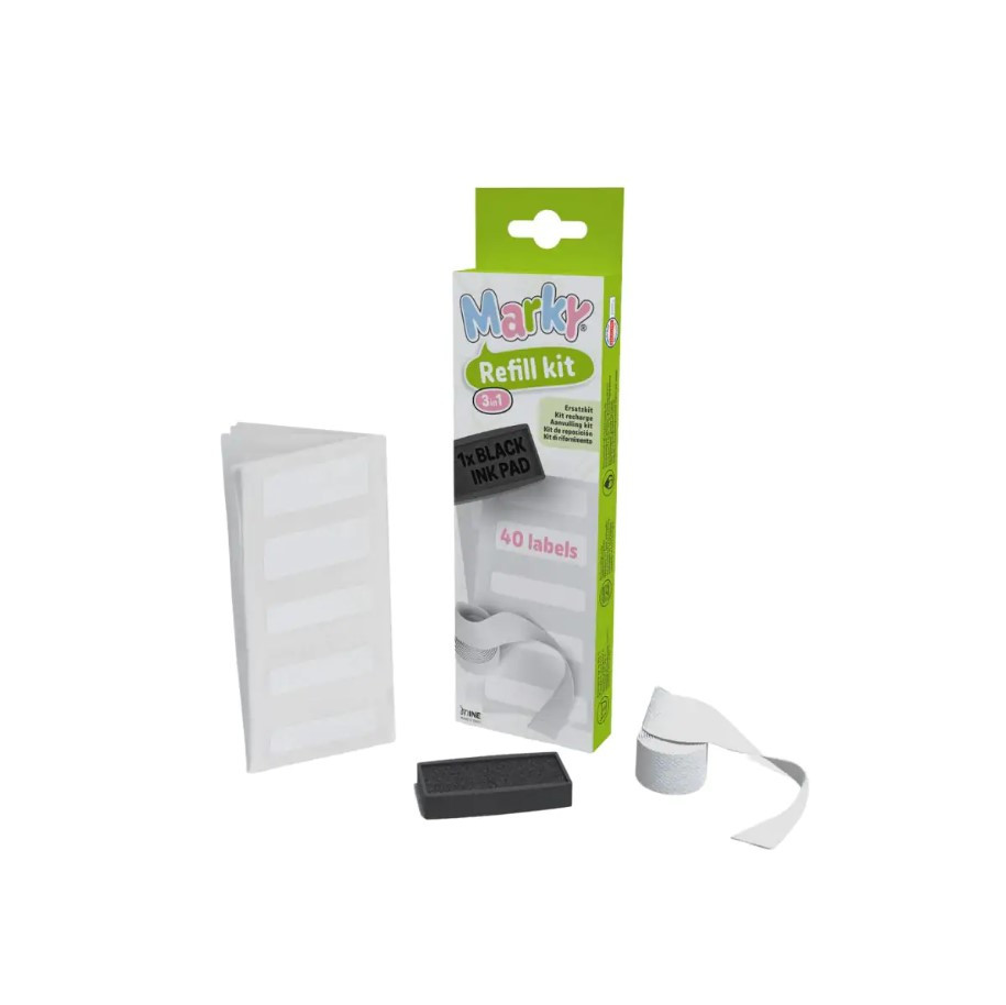 Marky Bélyegzőszett Utántöltő – 3 az 1-ben megoldás a folyamatos jelölésért! Ne hagyd, hogy kifogyjon a kedvenc Marky bélyegződ! A Marky Bélyegzőszett Utántöltő a tökéletes választás, hogy továbbra is könnyedén és tisztán megjelölhesd gyermekeid ruháit, iskolai felszereléseit vagy akár saját holmijaidat. Ez a 3 az 1-ben utántöltő készlet biztosítja, hogy mindig készen állj a címkézésre! Mit tartalmaz a csomag? - 1 db fekete tintapárna – Erős és tartós nyomatot biztosít, amely akár 30 mosást is kibír!- 40 db címke – Ha a ruhák anyaga nem alkalmas közvetlen bélyegzésre, egyszerűen ragasztható címkékkel is dolgozhatsz.- 1 tekercs textilcímke – Speciálisan tervezett, vasalás nélkül is tapadó anyaggal. Miért válaszd a Marky utántöltőt? - Gyors és egyszerű használat – Csupán pár másodperc, és kész a jelölés!- Mosásálló tinta – A nyomat akár 30 mosásig is kitart!- Sokoldalú felhasználás – Ideális ruhákhoz, cipőkhöz, tanszerekhez, uzsonnás dobozokhoz és egyéb kiegészítőkhöz.- Praktikus és gazdaságos – Egyetlen utántöltővel hosszú ideig használhatod a bélyegződet. Ne hagyd, hogy a holmik elveszjenek! A Marky Bélyegzőszett Utántöltővel minden könnyedén beazonosítható marad!A termék mérete 6 x 18 cm dobozban.