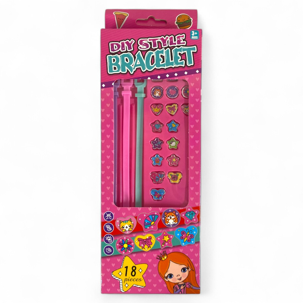 Engedd szabadjára a kreativitásod és készíts saját, egyedi karkötőket ezzel a vidám és színes DIY Style szettel! A csomagban három színes karkötőalap és 15 cuki, csillogó dísz található, amelyek könnyedén felpattinthatók az alapokra – így minden nap új stílust alkothatsz magadnak.