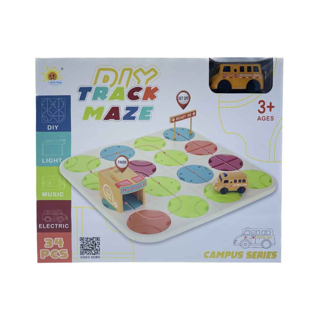 Fedezd fel a logikai játék örömét a DIY Track Maze szettel, amelyben a gyerekek saját pályát építhetnek az aranyos iskolabusznak! A színes elemekből összeállított labirintus mozgó pályarészekből áll, melyeket a kis kezek könnyedén forgathatnak, hogy a jármű a célba érjen.