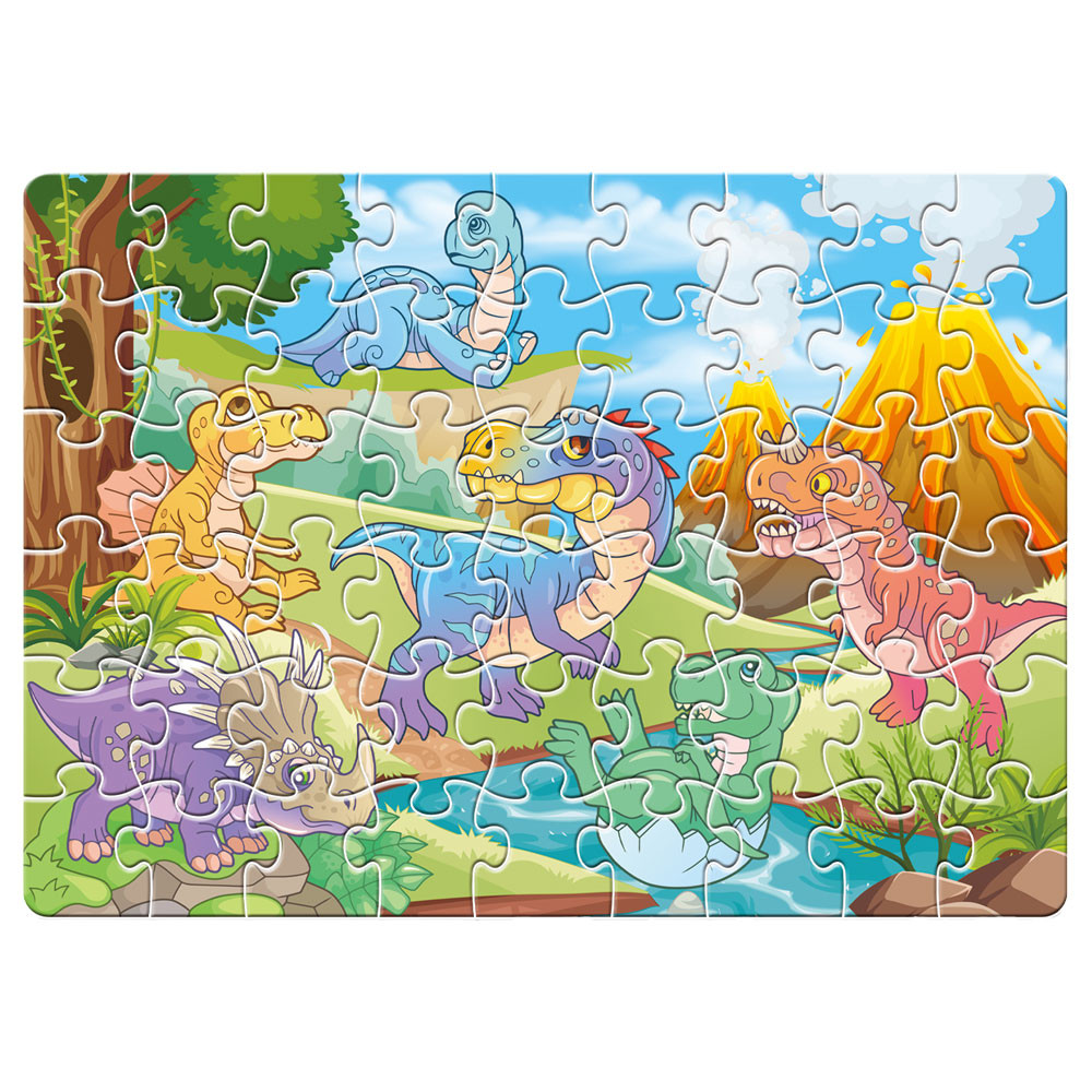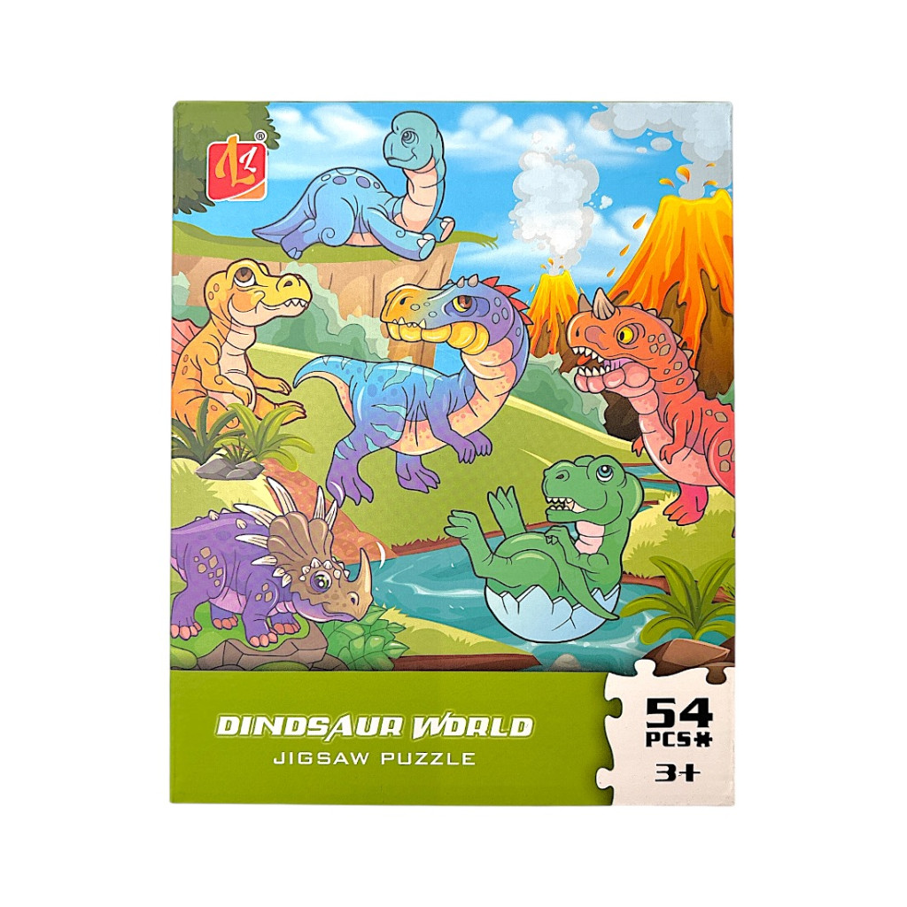 Fedezd fel az ősi világot ezzel a vidám és színes Dínós világ puzzle készlettel! A 54 darabos kirakó egy izgalmas, barátságos dinoszauruszokkal teli jelenetet ábrázol, ahol a kicsik elmerülhetnek a kalandos őskori világban.