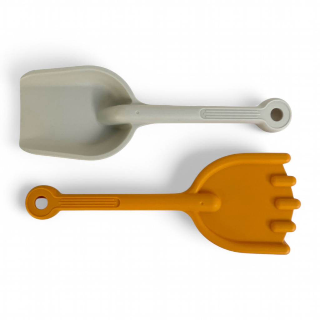 A két dínó formájú homokszóró mókás mintákat hagy a homokban, a gereblye és a lapát pedig elengedhetetlen kellékei az ásásnak és építkezésnek. A szett nemcsak szórakoztató, de fejleszti a kézügyességet, kreativitást és a fantáziát is.