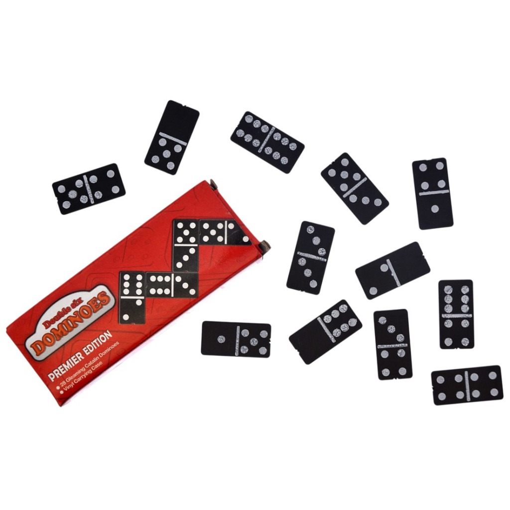 A klasszikus dominózás új szintre emelve! Ez a Premier Edition dominó készlet 28 kiváló minőségű, fényes fekete dominót tartalmaz, amelyek fehér pöttyökkel vannak ellátva a könnyű felismerhetőségért. A strapabíró vinyl tok praktikus tárolást és egyszerű szállítást biztosít, így bárhová magaddal viheted – legyen szó egy családi játékról vagy baráti összejövetelről.