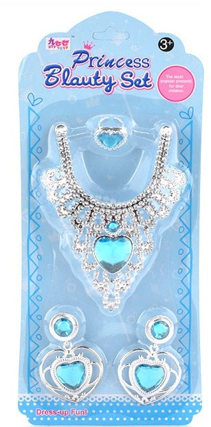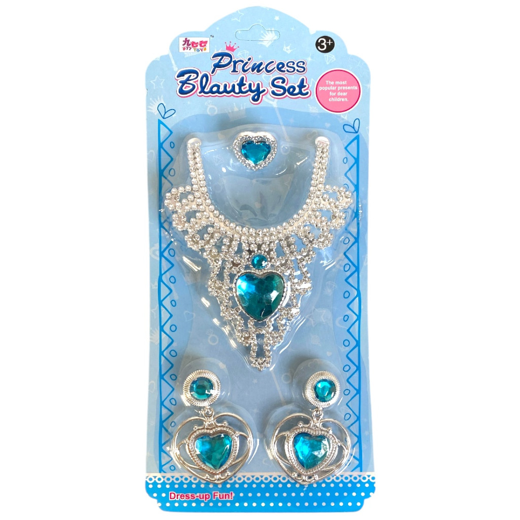 Csillogó ékszerkészlet nyaklánccal és fülbevalóval, amely tökéletes választás kis hercegnőknek és divatrajongóknak. Szerepjátékhoz, jelmezhez vagy ajándéknak is ideális, praktikus lapon csomagolva.