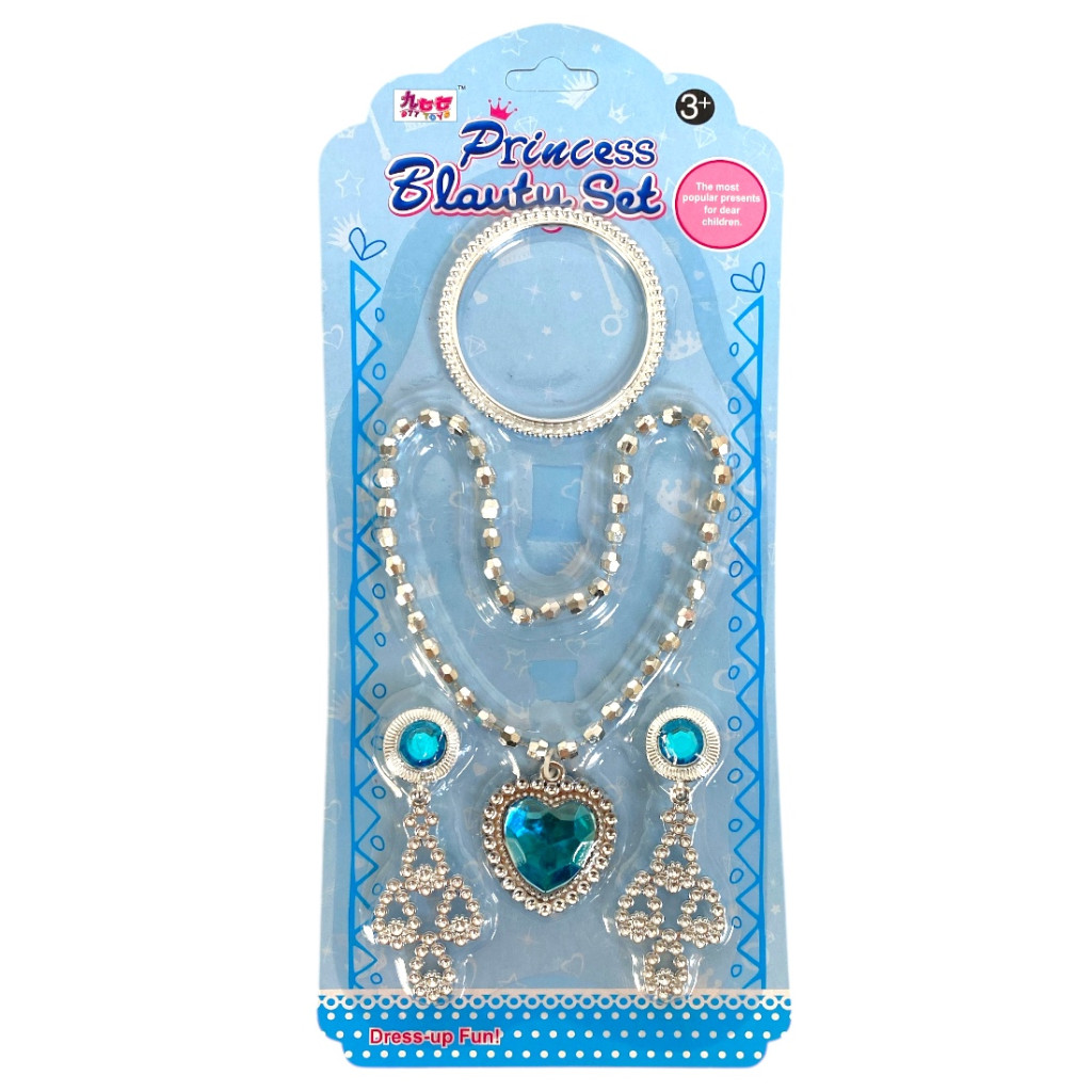 Elegáns ékszer készlet nyaklánccal, karkötővel és fülbevalóval, praktikus 13x27 cm-es bemutatólapon. Ideális ajándék, kiegészítő hétköznapokra és alkalmakra.