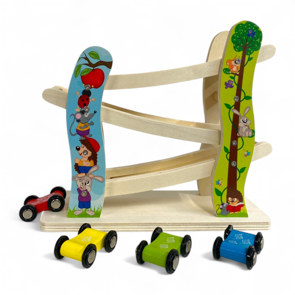 Fedezd fel a klasszikus fa autópályát, amely garantált szórakozást nyújt minden kisgyermek számára! Ez a gondosan megtervezett pálya nemcsak esztétikus, de fejleszti a kézügyességet, a problémamegoldó készséget és a koncentrációt is.