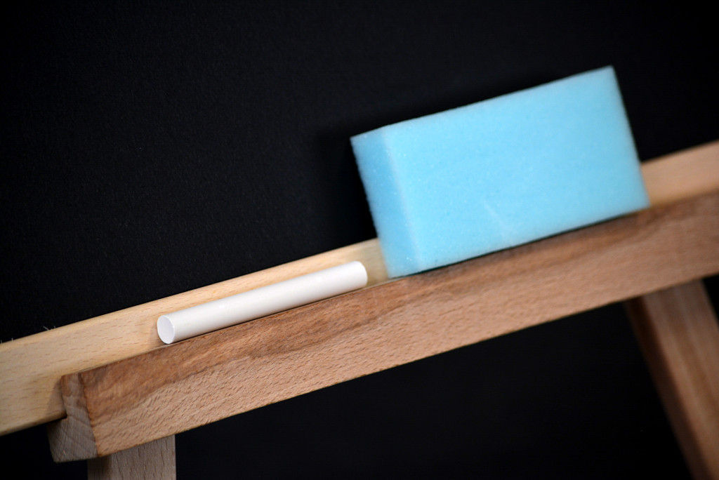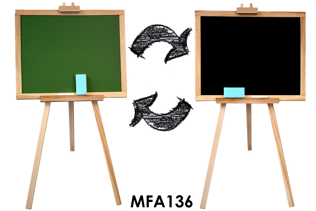 A könnyen forgatható mechanizmus révén a tábla gyorsan átfordítható, így az egyik oldalról a másikra váltás pillanatok alatt megvalósítható. Mindkét oldalon található egy kis tartó, ahová a krétákat és a törlőt helyezhetjük, biztosítva ezzel a kényelmes használatot.