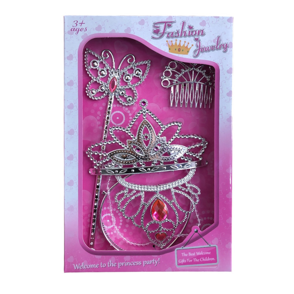 A Fashion Jewelry ékszerkészlet a tökéletes választás minden kislánynak, aki szívesen merülne el a hercegnők csillogó világában. A készlet tartalma: egy lenyűgöző, részletgazdagon kidolgozott korona, egy elegáns jogar, egy varázslatos nyakék, valamint egy hajdísz, amelyek mind hozzájárulnak a teljes hercegnői megjelenéshez. A csillogó ékszerek és az élénk színes kövek garantáltan elbűvölik a kicsiket, akik igazi királylánynak érezhetik magukat játék közben.