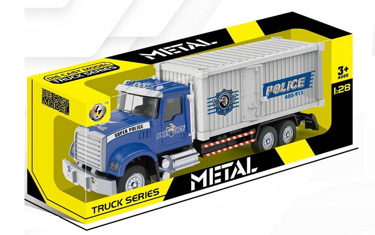 Fedezze fel a rendőrségi teherautó világát ezzel a 29x12 cm-es, 3 féle változatban elérhető fém modell játékkal.