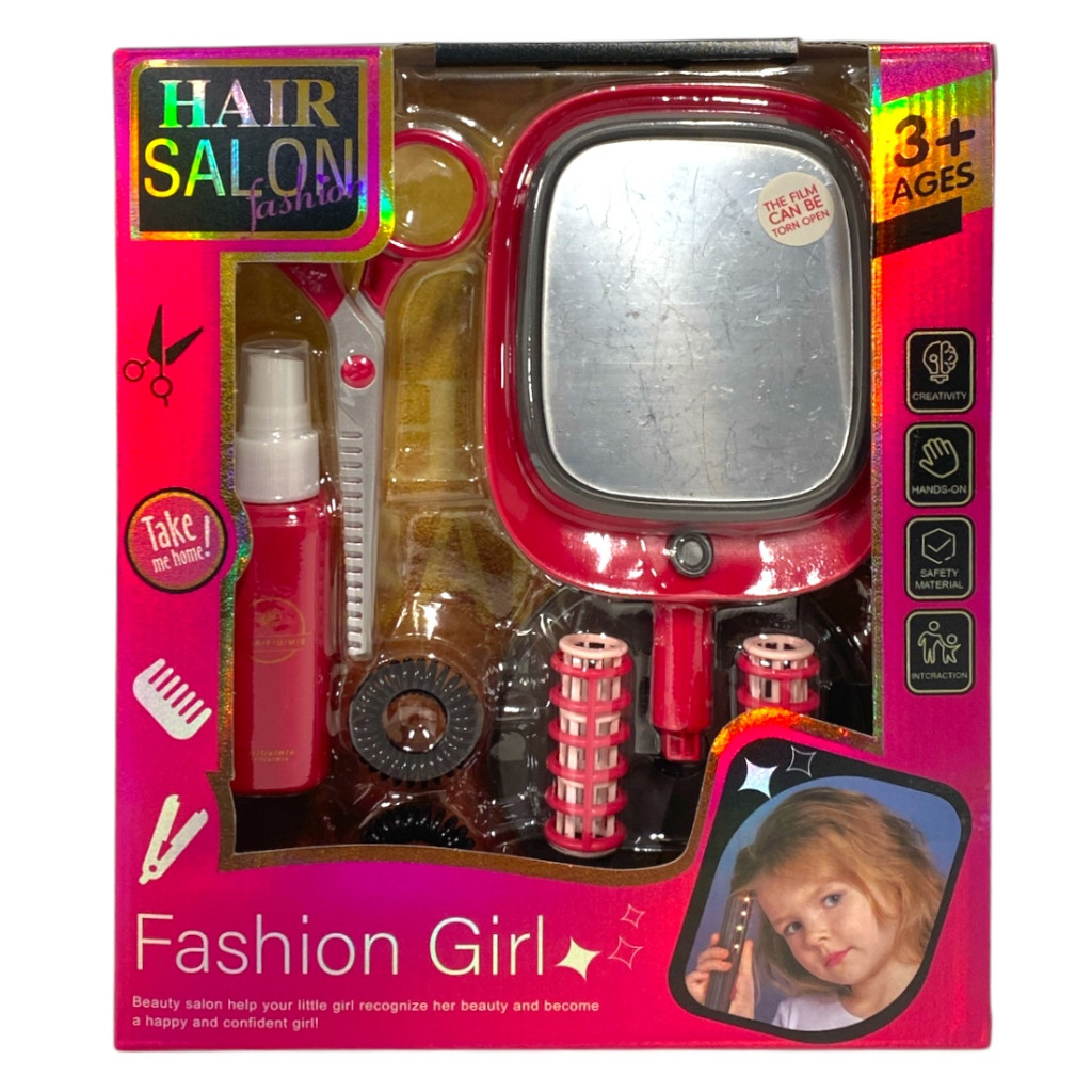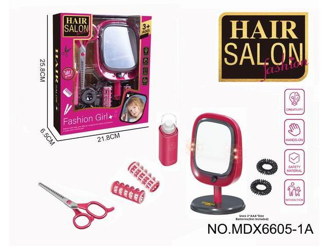 A készletben található egy világító tükör, valamint többféle fodrász kiegészítő, például olló, hajcsavarók és hajdíszek, amelyekkel a gyerekek igazi szépségszalont alakíthatnak ki játék közben. A kiegészítők segítenek abban, hogy a gyerekek fantáziájuk szerint készítsenek különféle frizurákat.