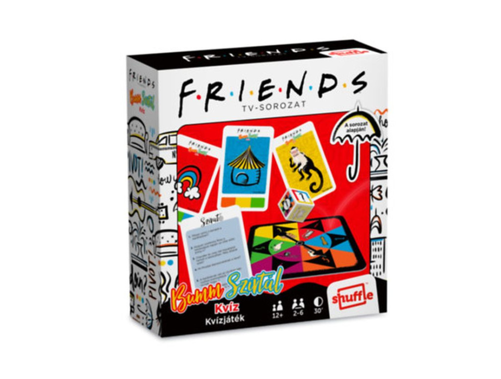 Merülj el a világ egyik legikonikusabb sorozatának varázslatos hangulatában a Friends – Jóbarátok Bumm Szívtál! kvízjátékkal! Ez az izgalmas társasjáték igazi kihívást jelent minden rajongónak, miközben garantált szórakozást nyújt barátaidnak és családodnak. Vajon mennyire ismered Chandler humoros beszólásait, Ross dinoszaurusz-mániáját, vagy Monica tökéletes rend iránti vágyát? Most próbára teheted magad, és bebizonyíthatod, hogy te vagy a legnagyobb Jóbarátok-szakértő!