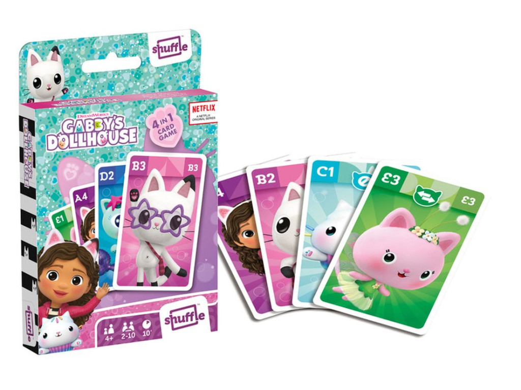 A Gabi babaháza 4 az 1-ben kártyaszett remek választás minden kisgyermek számára, aki szereti a Gabi babaháza varázslatos világát! Ez a kártyaszett négyféle játékot kínál: memóriajátékot, kvartettet, reflex és egy makaó kártyajátékot, így mindig új kalandok várnak a gyerekekre Gabi és barátai társaságában.