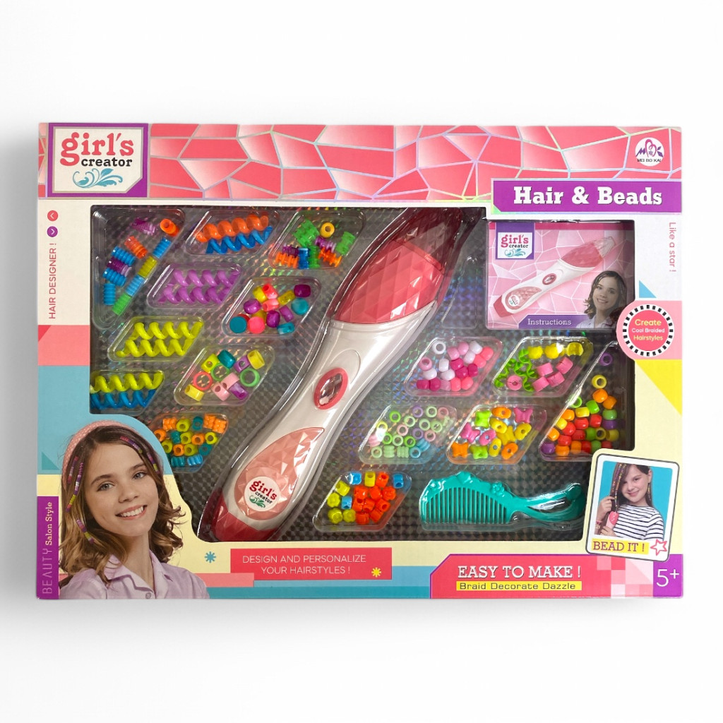A szett tökéletes választás kis divatdiktátoroknak, akik szeretnek alkotni, és szívesen kísérleteznek a stílusukkal. A vidám színű gyöngyök, a praktikus fésű és a könnyen használható eszköz garantálják a sikerélményt már 5 éves kortól.