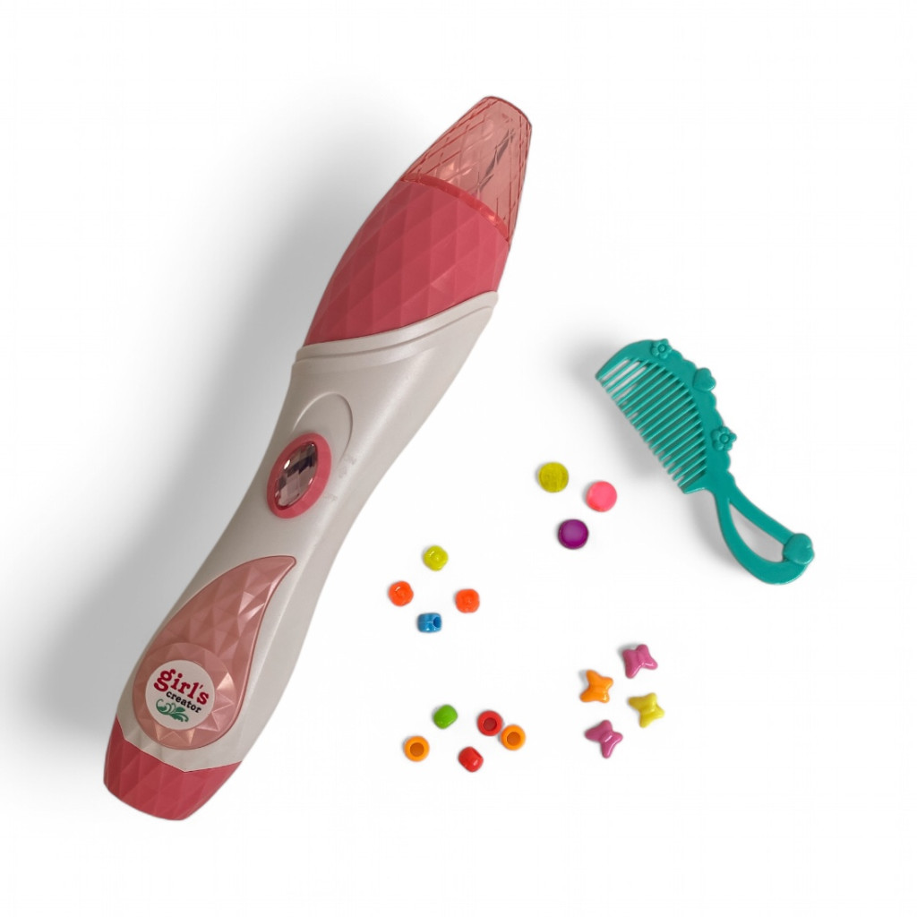 Lépj be a kreatív hajstílusok csillogó világába ezzel a menő, gyöngyfűzős hajformázó készlettel! A gyöngyfűző toll pillanatok alatt díszbe borítja a frizurádat – csak válaszd ki a színes gyöngyöket, fűzd be, és máris indulhat a csillogás!