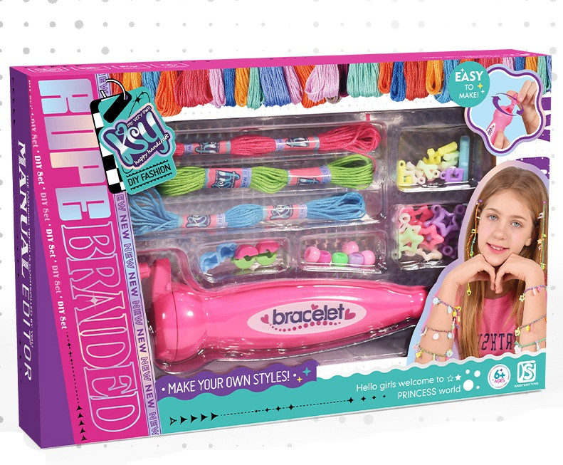 Készíts elragadó hajfonatokat ezzel a dekoráló készlettel, ami fonó eszközt és színes fonalakat is tartalmaz.