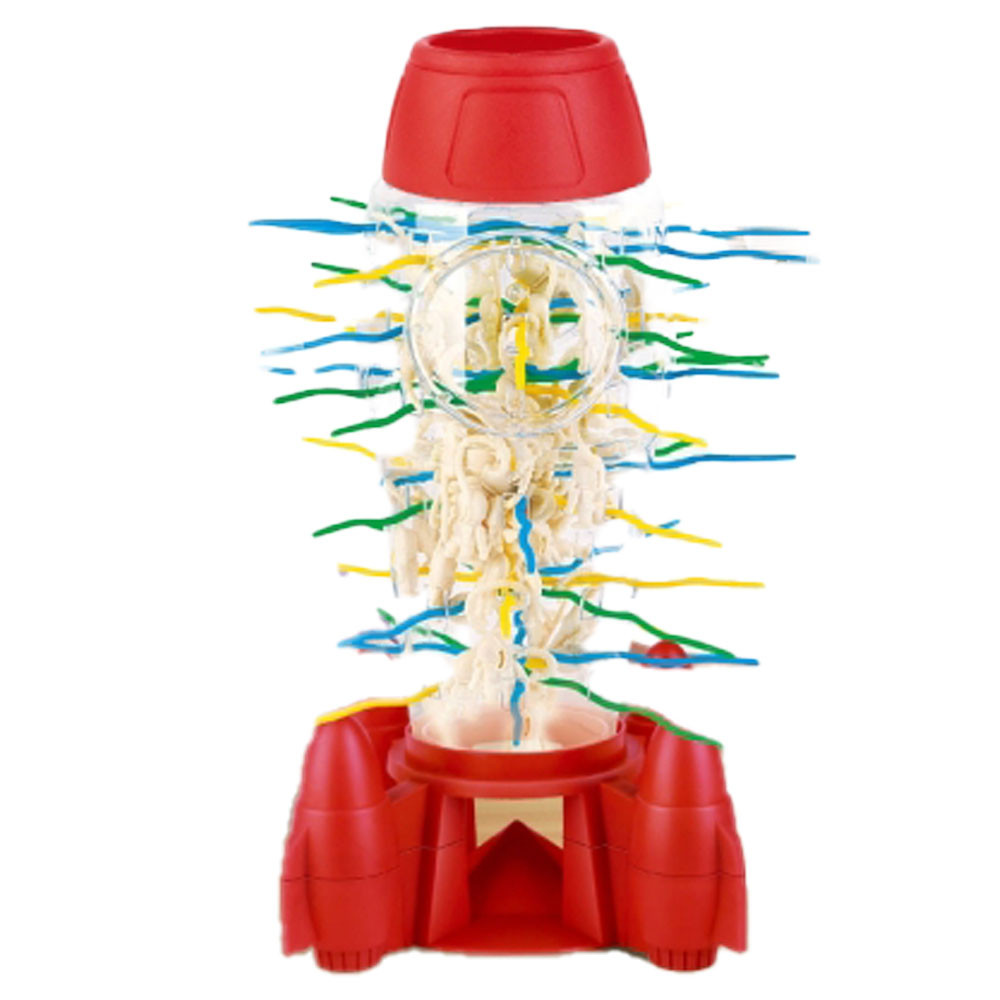 A játék tartalma:30 db pálcika30 db űrhajós figura1 db pörgettyű1-1 db űrhajó test, űrhajó alap és tetőA játék kezdete előtt szereljük össze az űrhajót, majd a pálcikákat úgyhelyezzük bele az űrhajó testén lévő lyukakba, hogy minden lyukban legalábbegy pálcika legyen. Ezt követően öntsük bele az űrhajós figurákat az űrhajótetején lévő nyílásba. A lényeg, hogy mind a 30 figura az űrhajóban maradjon.A játék során a pörgettyűvel kell pörgetni, és a megfelelő színű pálcikát kellkihúzni úgy, hogy minél kevesebb űrhajós essen ki. A kiesetteket a játékosmaga elé helyezi.Az nyer, akinek az összes pálcika kihúzása után kevesebb űrhajósa van-A termék csomagolási mérete: 21x27 cm dobozban.
