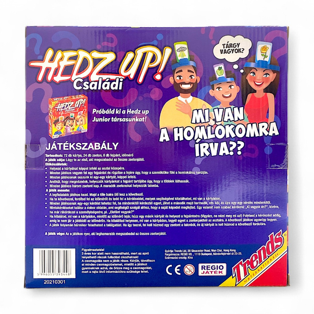 Ez a játék tökéletes családi és baráti összejövetelekhez, fejleszti a kommunikációs készségeket, és elősegíti az együttműködést is. A Hedz Up! társasjáték kiváló választás, ha egy vidám, energikus és könnyen tanulható játékot keresel, amely mindenki számára izgalmas kihívást és remek szórakozást nyújt!