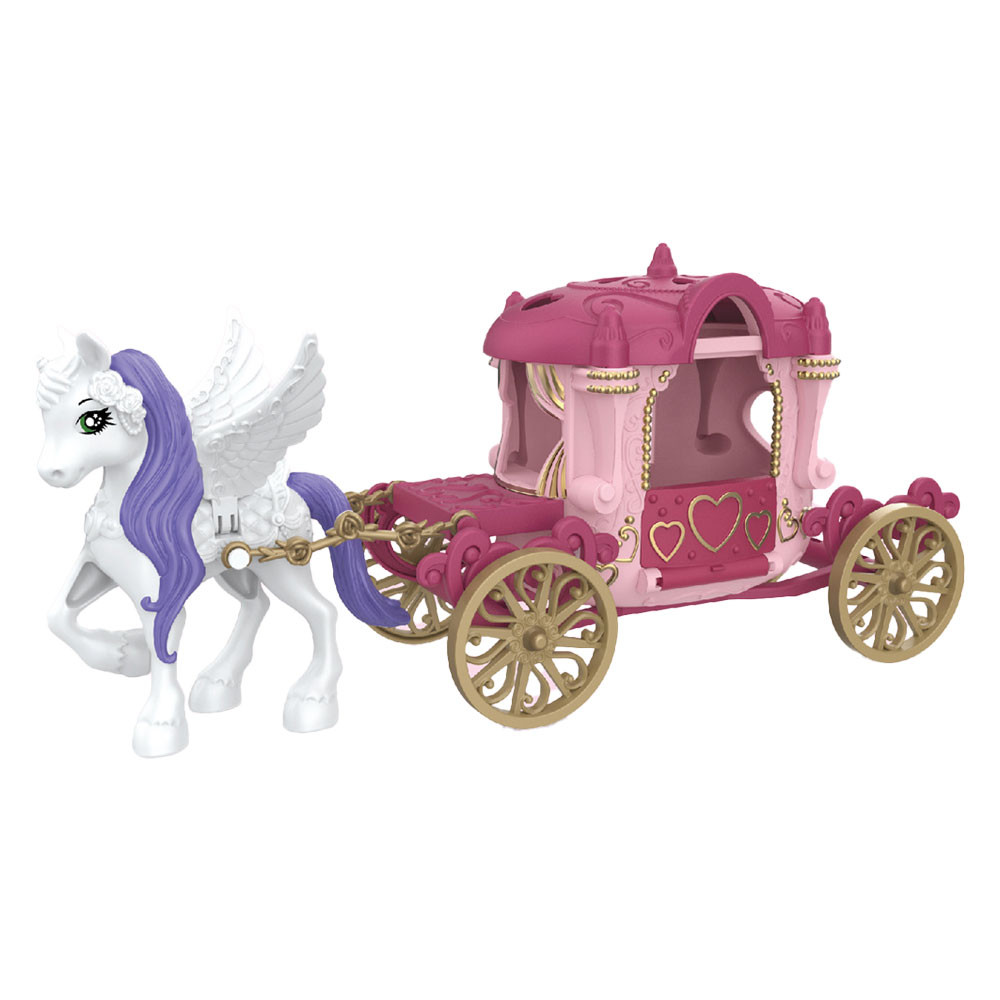 Vigye el gyermekét egy mesés utazásra ezzel az unikornis húzta hintós játékkal! Ez a bájos játék egyesíti a klasszikus hintó eleganciáját és az unikornis
