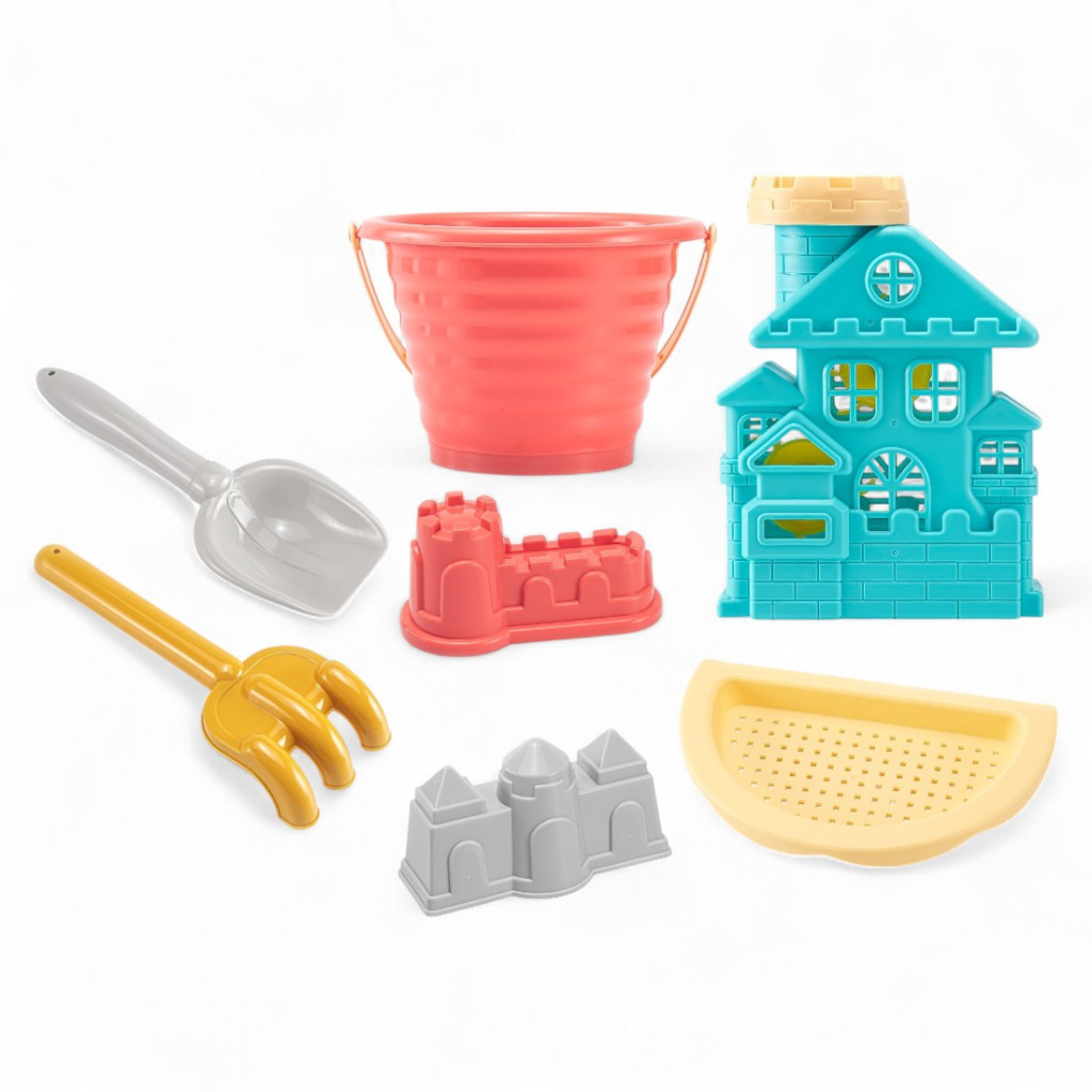 Homokozó készlet házikós vödörrel – Kreatív kalandok a homokban! Fedezd fel a homokozás örömét ezzel a színes és sokoldalú homokozó szettel, amelyben minden megvan, amire egy kis építőmesternek szüksége lehet! A különleges házikó alakú tároló nemcsak figyelemfelkeltő, de praktikusan elnyeli az összes formázót és eszközt is. A szett részei között megtalálod a klasszikus vödröt, szitát, lapátot, gereblyét és kastélyformázókat is, így a gyerekek végtelen fantáziavilágot teremthetnek a homokban – tornyokkal, árkokkal, házakkal és erődökkel. A készlet tartalma: 1 db házikó formájú tároló 1 db piros vödör füllel 1 db sárga félkör alakú szita 2 db kastélyformázó (piros és szürke) 1 db szürke lapát 1 db sárga gereblye Miért imádják a gyerekek? Színes, figyelemfelkeltő elemek Sokféle forma és eszköz Játékos fejlesztés: finommotorika, kreativitás, térlátás Ajánlott életkor: 3 éves kortólTökéletes választás strandoláshoz, kertbe vagy játszótérre!