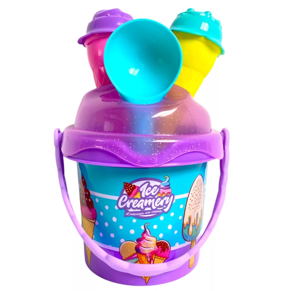 Ez a vidám fagylaltos homokozó készlet garantáltan feldobja a kinti játékot! A vödör, a 3 tölcsér és a különféle eszközök segítségével a gyerekek saját „homokfagyizójukat” alakíthatják ki, miközben kreatívan formázzák a homokot.