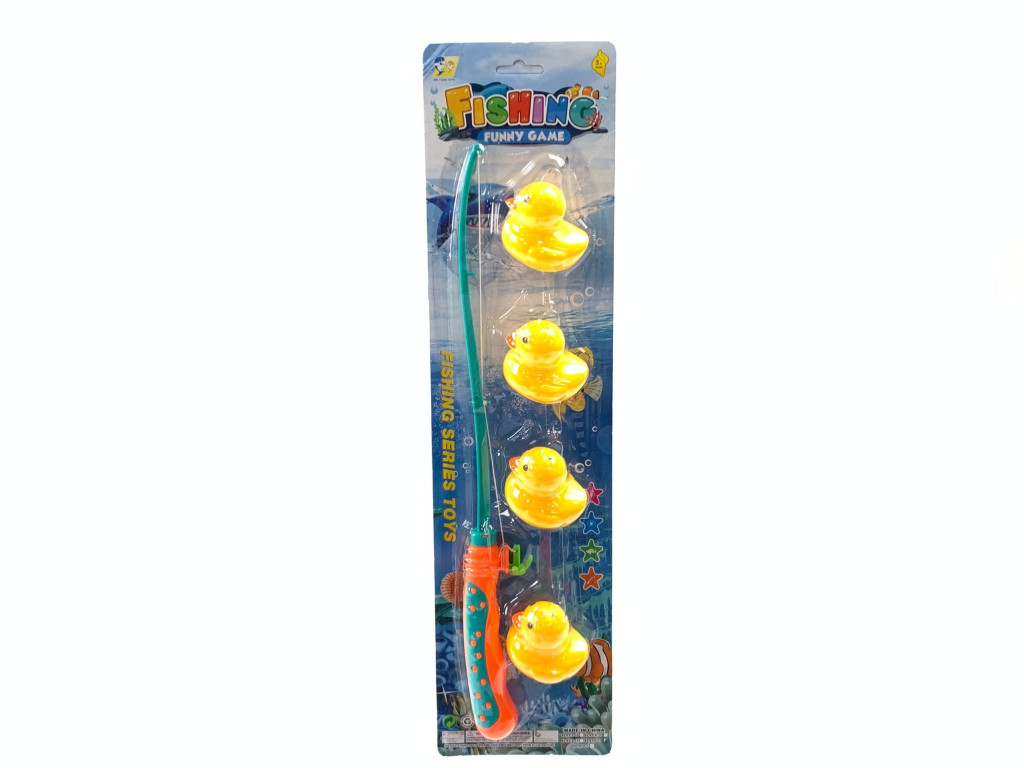 Színes horgász készlet 4 db kacsával, kampós bottal, 13x49 cm-es lapon. Ideális fürdőkádba vagy medencébe, fejleszti a kézügyességet és a koncentrációt játék közben.