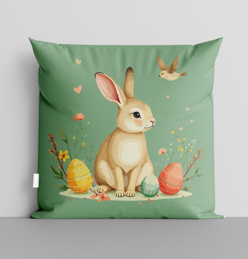 Húsvéti zöld párna – nyuszis, tojásos díszpárna, 36 cm