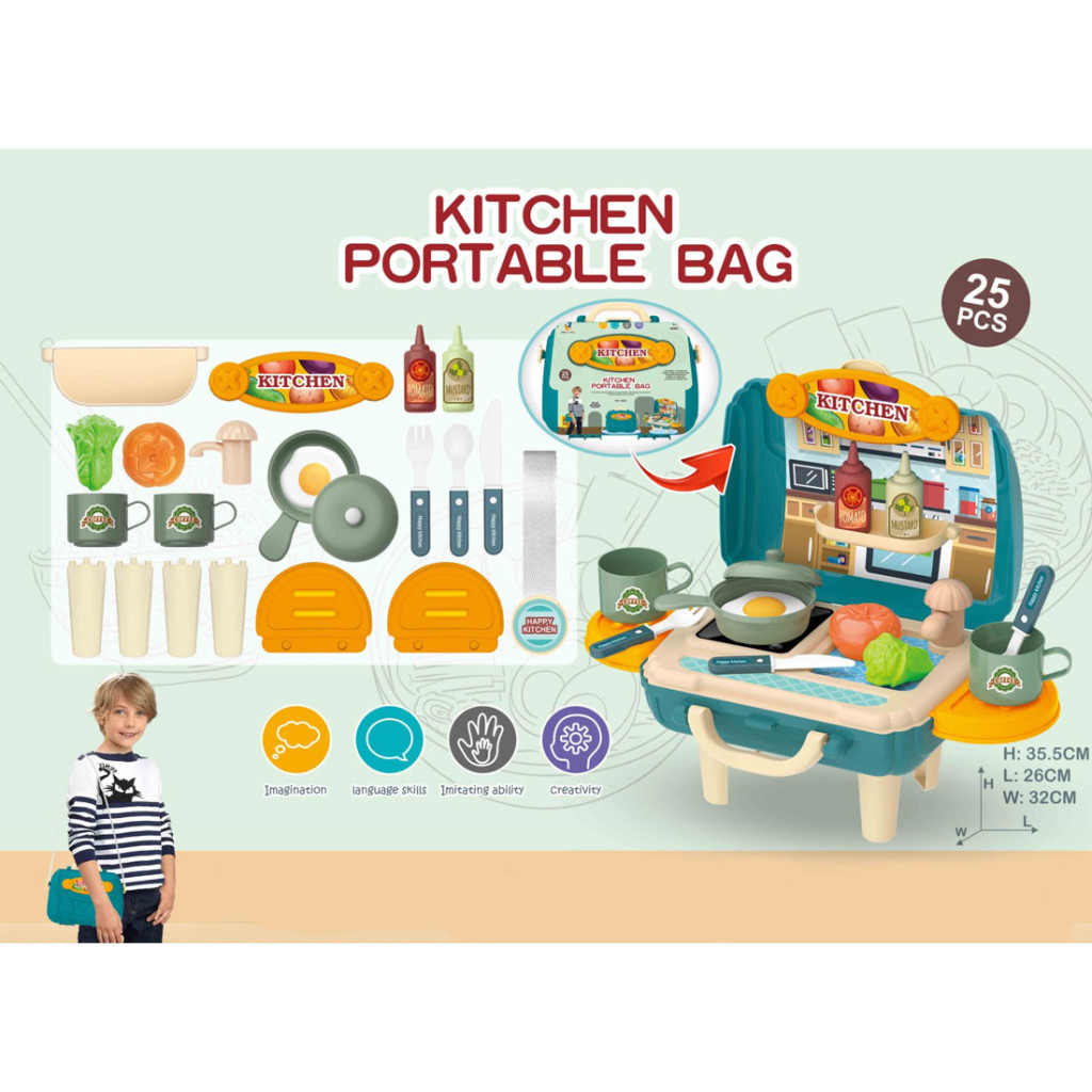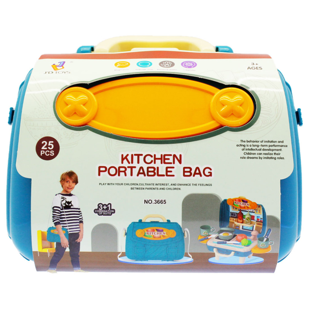 A JD Toys - Kitchen Portable Bag játékkonyha szett tökéletes választás a kis szakácsoknak, akik szeretnék kipróbálni a főzés izgalmait. A hordozható táska 25 különféle eszközt és kiegészítőt tartalmaz, beleértve serpenyőket, csészéket, evőeszközöket, zöldségeket és fűszereket, hogy a gyerekek számára teljes élményt nyújtson. Az aprólékosan kidolgozott részletek és a valósághű kiegészítők lehetővé teszik, hogy a gyerekek szerepjátékokon keresztül fejlődjenek, miközben szórakoznak.