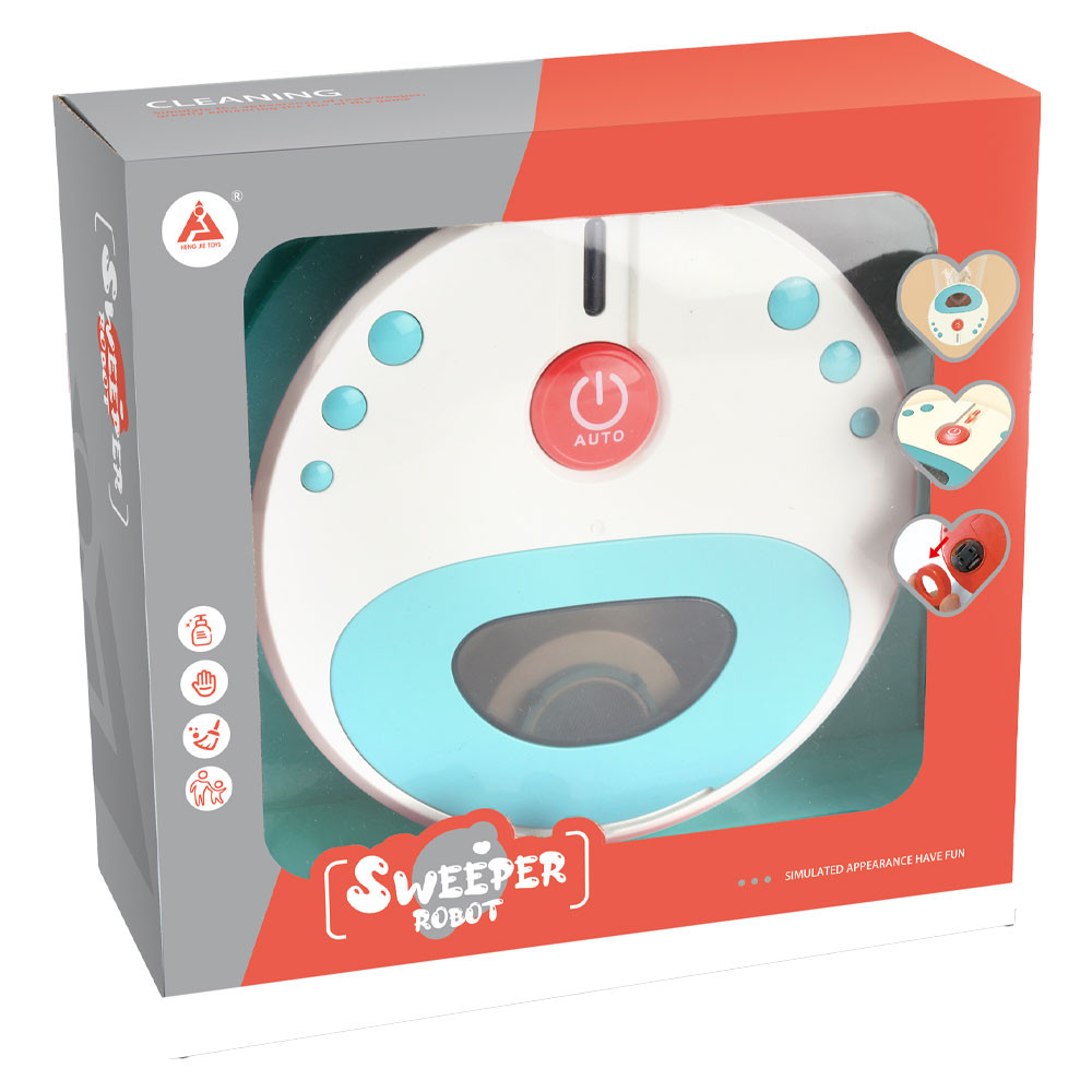 Ez a játék robotporszívó (Sweeper Robot) tökéletes módja annak, hogy a gyerekek játékosan elsajátítsák a takarítás folyamatát, miközben bevezetést kapnak a modern technológia világába. Az egyszerű és vidám megjelenés, világoskék és fehér színeivel, könnyen elnyeri a gyerekek tetszését, és bármilyen játék háztartás kiegészítője lehet.